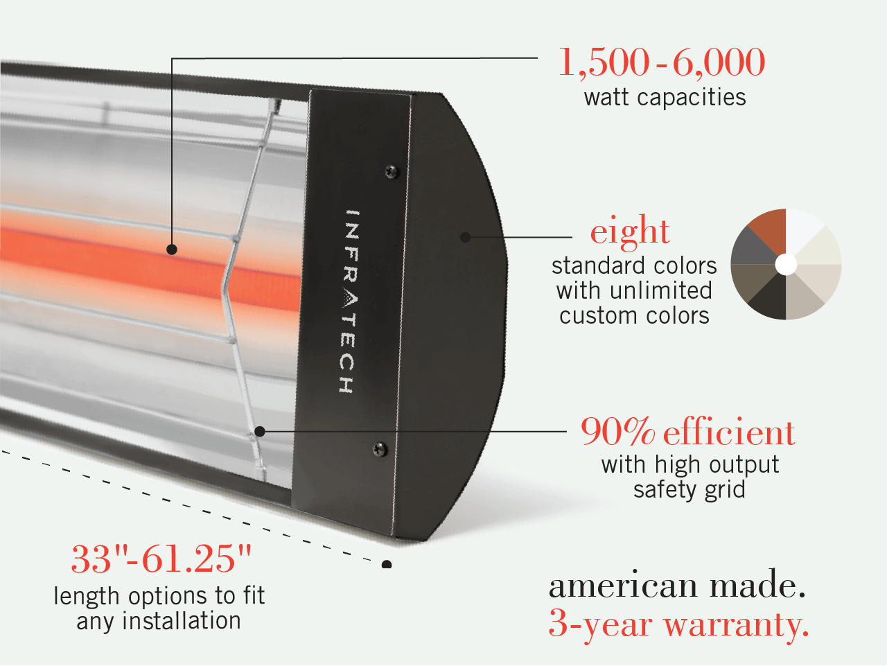 VenmoInfratech CD6024 Heater black with motiv decorative front. 6000 (220 volt)watt dual element 61-1/4” infrared heater. Retail $1100.
