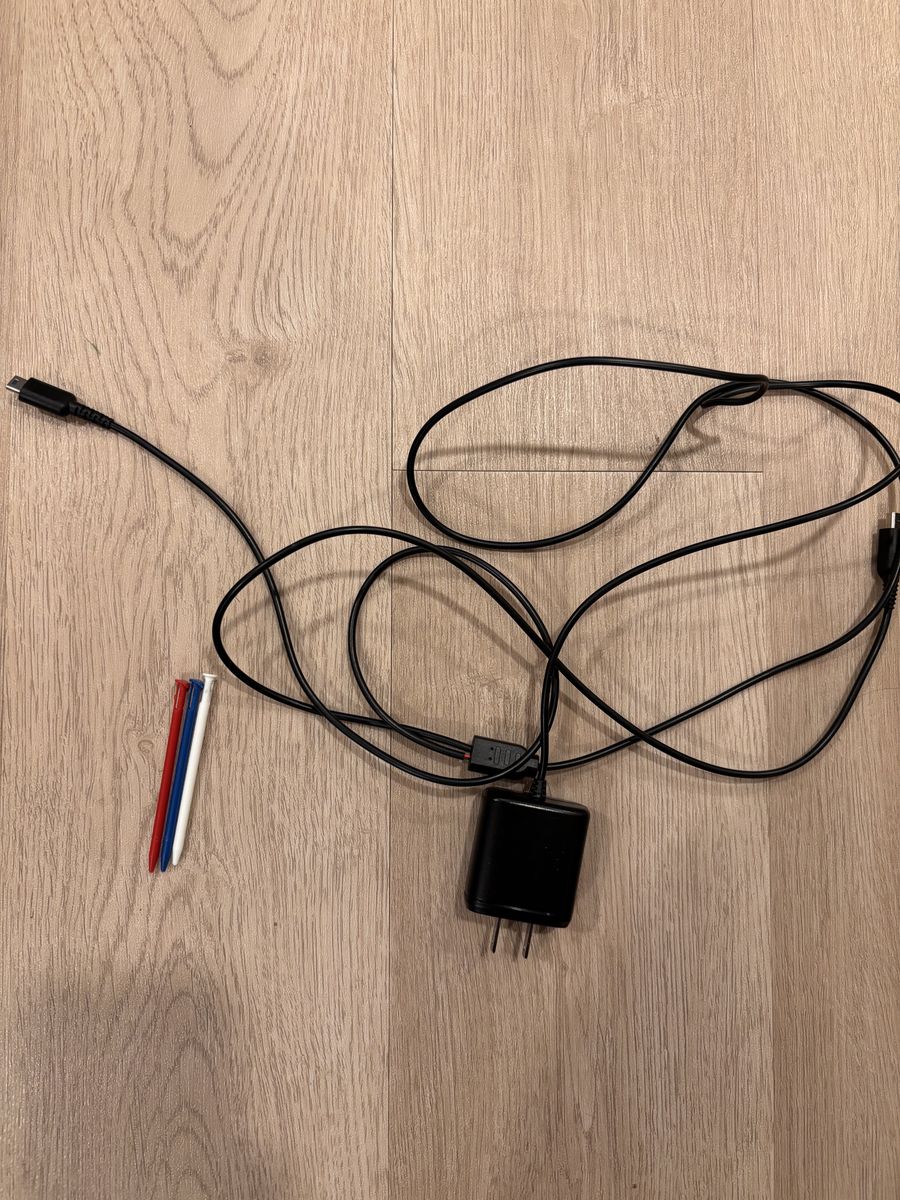 Comes with a charger and three extra styluses. The charger and the styluses are not the original