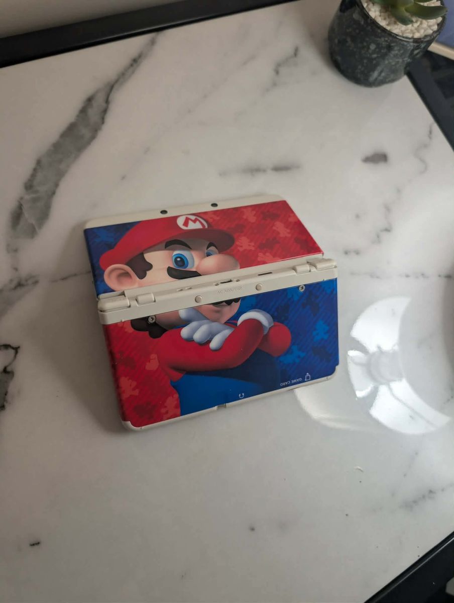 ZelleNew Nintendo 3DS - Super Mario 3D Land Edition. It is “New” in the name, not new as far as its condition.