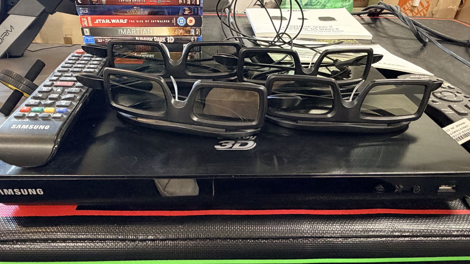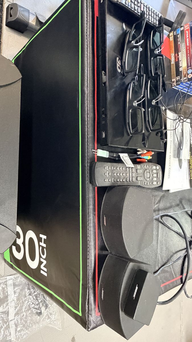Samsung tv/dvd with 3d glasses and the Bose system added on will make your movies sound great.