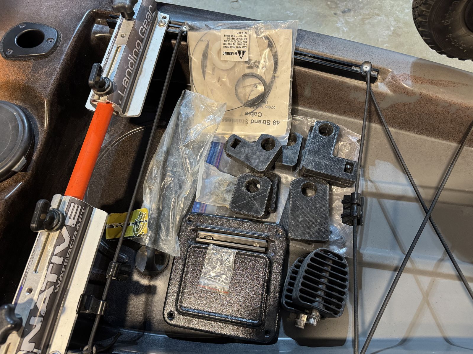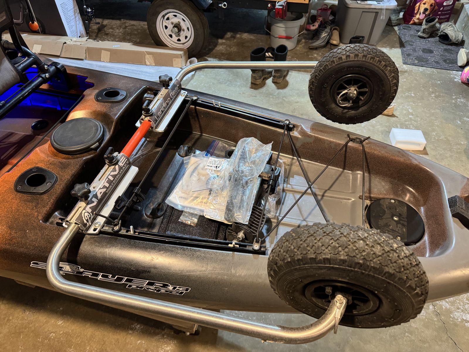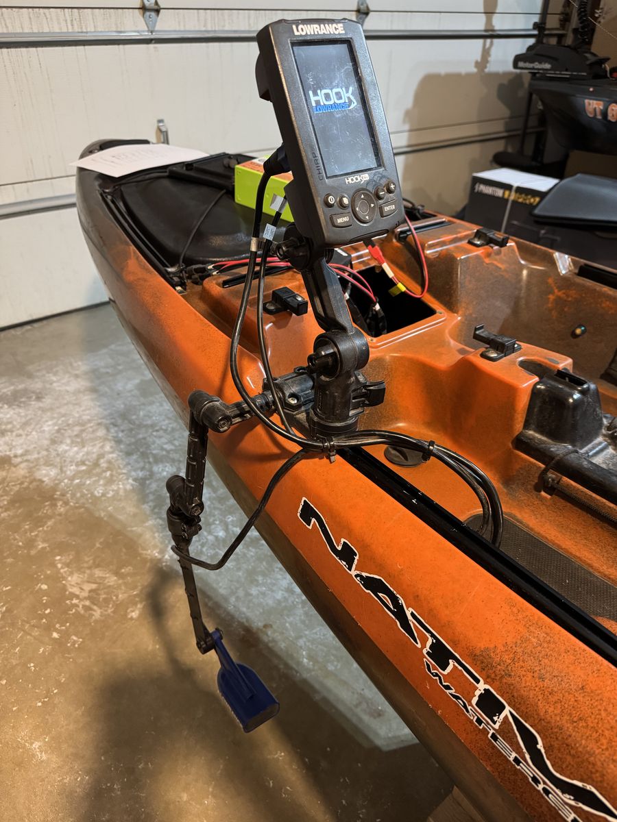 Comes with the following: Native Propel pedal drive with RockBros pedals Kayak paddle Lowrance Hook 4x w/ Yakattack mount 12v 10ah Lithium battery YAKPower 5port switch YAKPower blue lights Yakattack switchblade transducer mount Boonedox rudder upgrade Native sidekick w/ floating wheels Seat riser Spare seat riser in additional height Spare steering cable Spare prop Original pedals