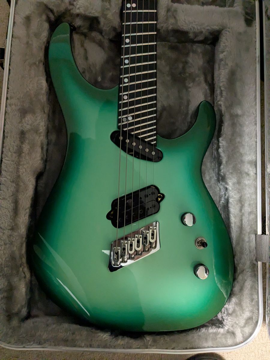 VenmoLike new with hard case. This is a one off Jeff Ormsby did a burst paint job on. Only one they've painted like this, and also the only one from the first run with chrome hardware instead of black. It's a monster, especially down tuned.