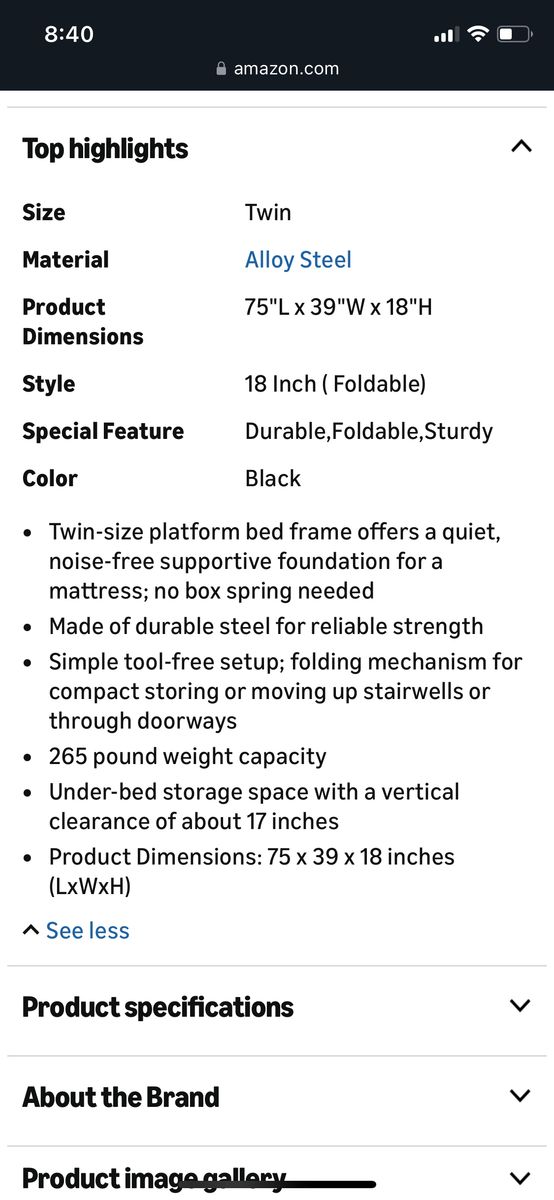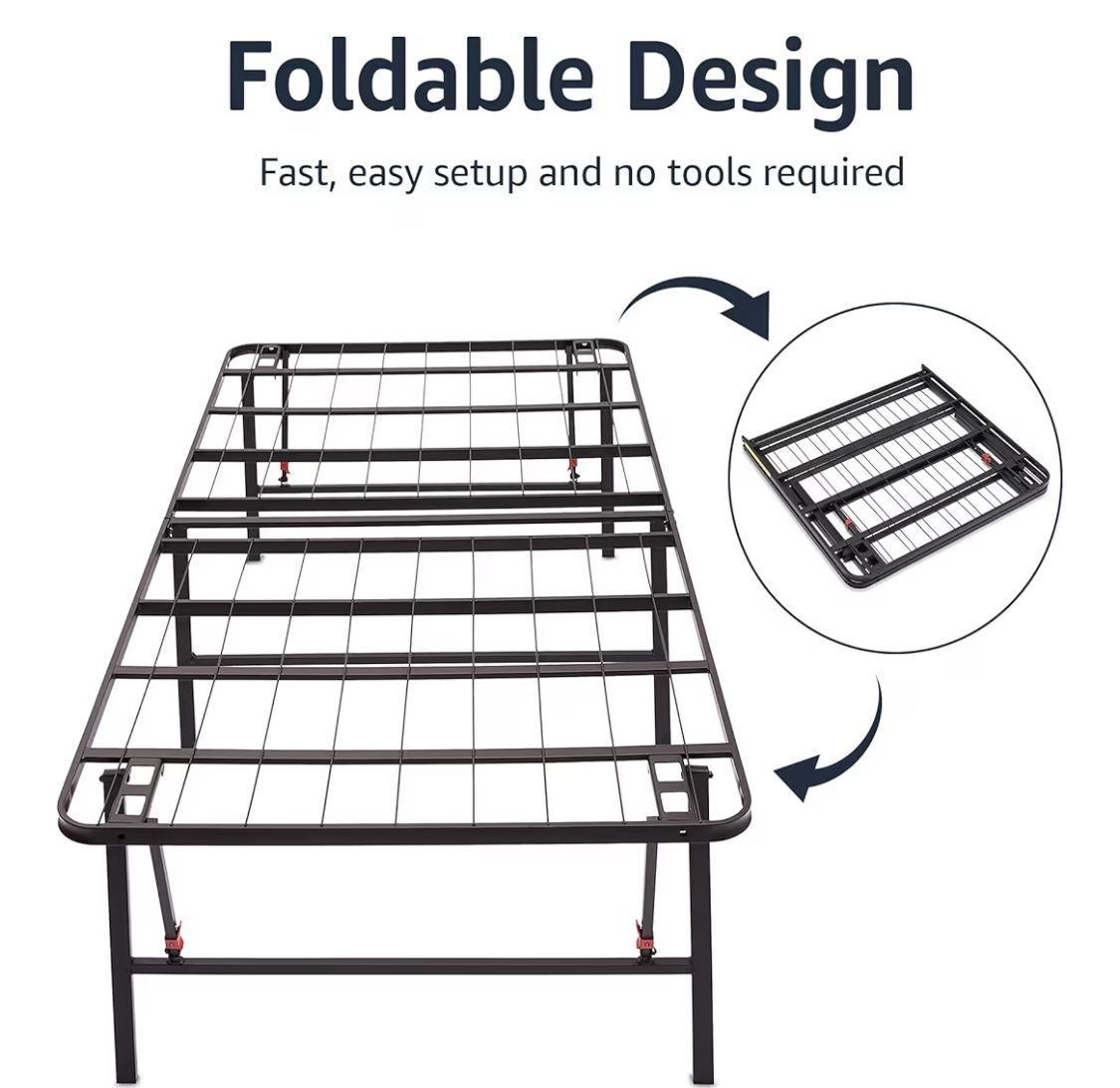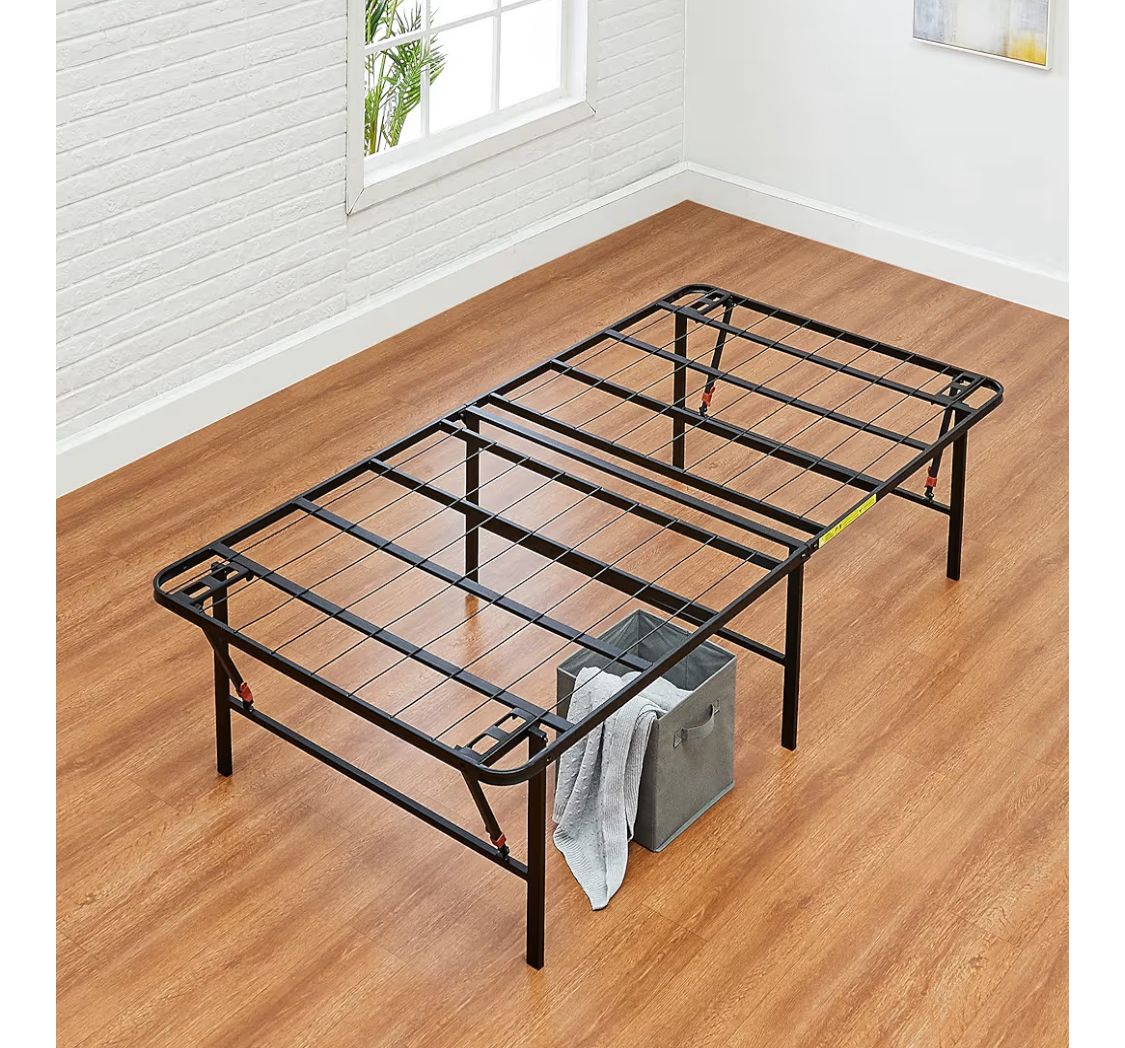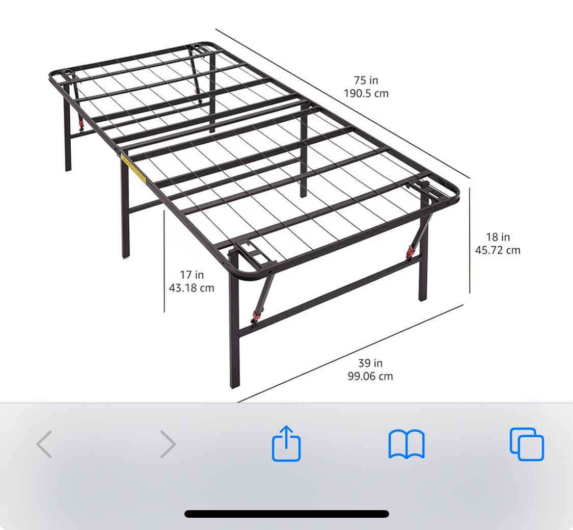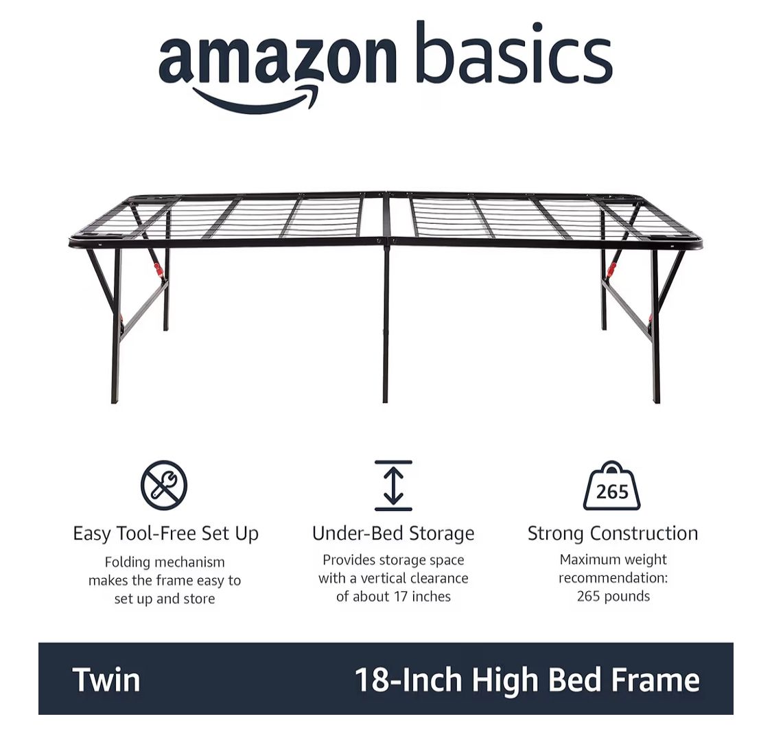 Amazon Basics Foldable Metal Platform Bed Frame with Tool Free Setup, 18 Inches High, Sturdy Steel Frame, No Box Spring Needed, Twin, Black