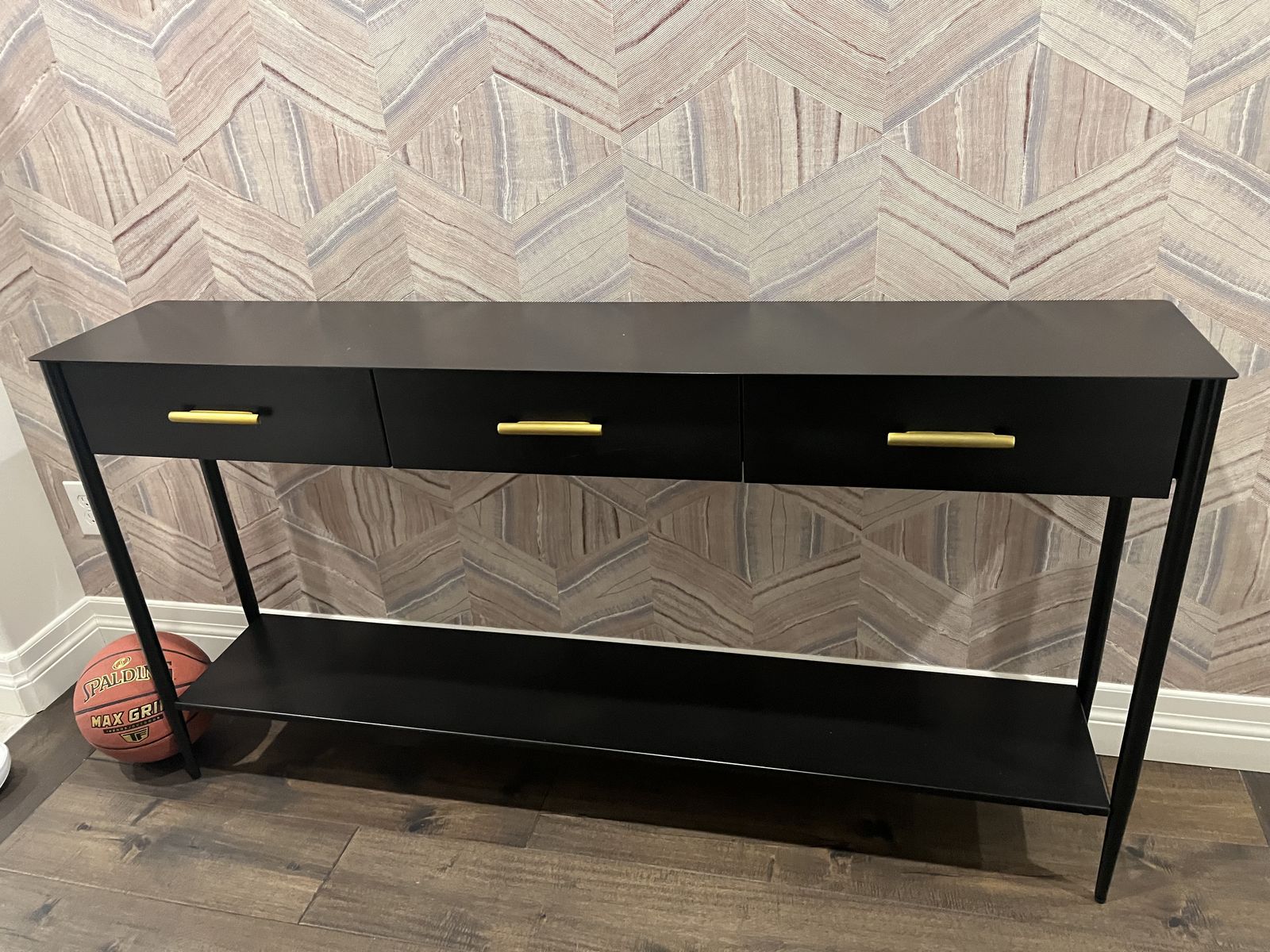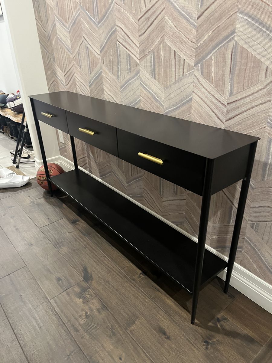 Console table -back with bronze drawer pulls. Great for entry way or low profil bedroom table