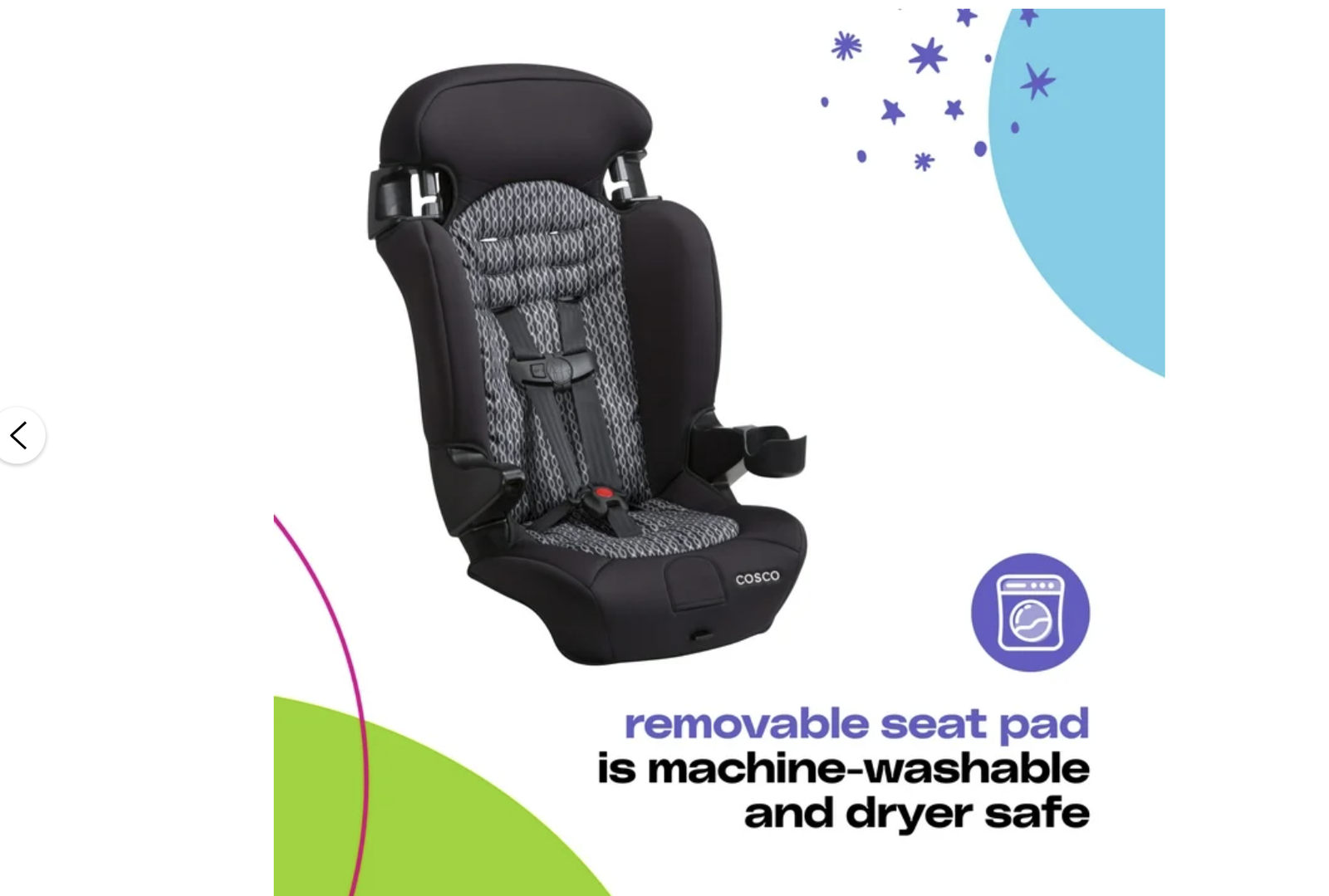 The Cosco Kids Finale 2-in-1 Booster Car Seat may be the last car seat you will ever need! It features extended use in both of its two modes. It starts by keeping kids securely in a 5-point safety harness all the way up to 65 pounds. In its second mode, as a belt-positioning booster, it has them covered up to 100 pounds.