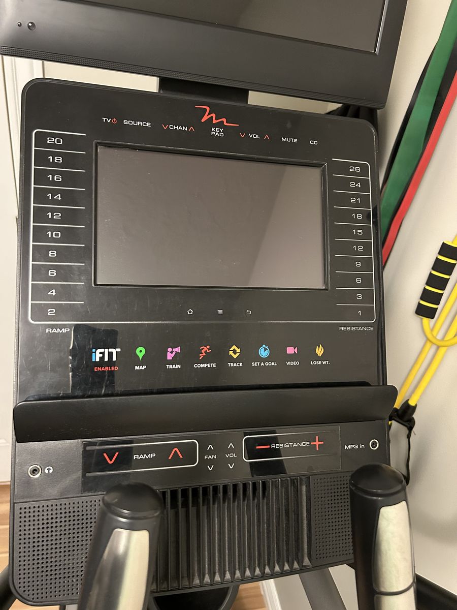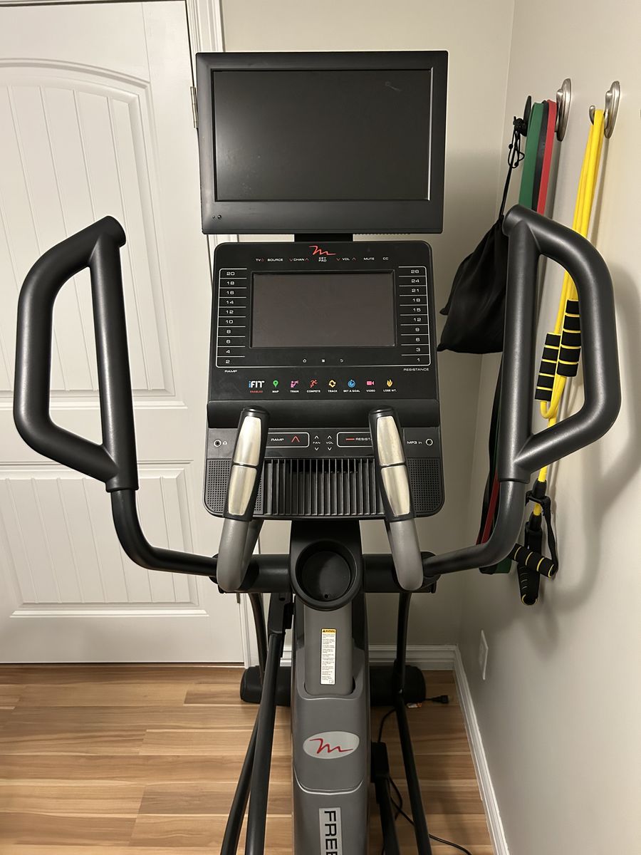 VenmoUsed-like new elliptical from RC Willey. -20” power adjustable stride -32lb interia enhanced flywheel -digital quick incline -10” color touch display -15” HDTV integrated -ifit enabled -wireless chest straps included -400lb user capacity