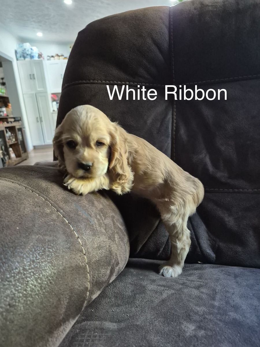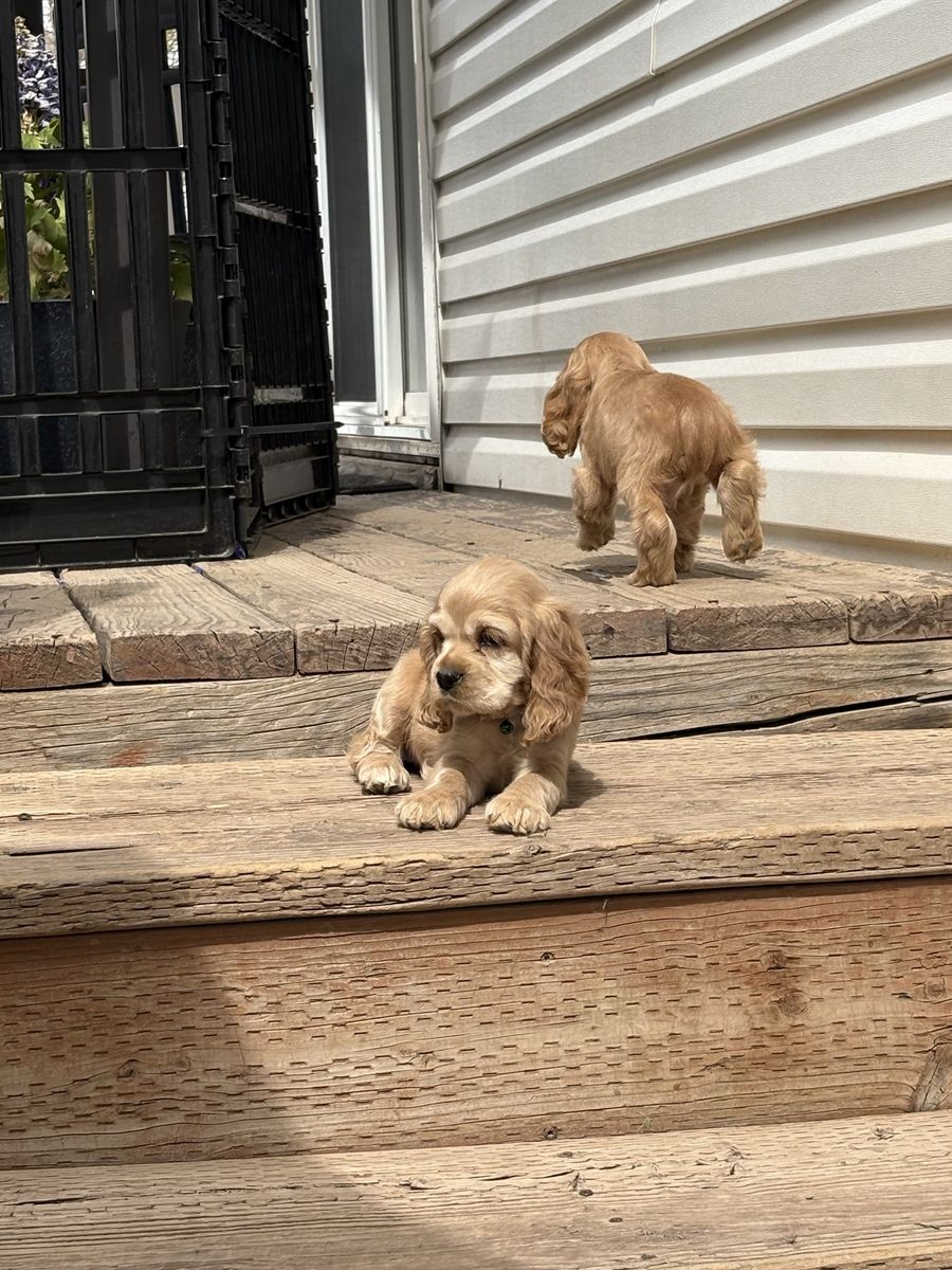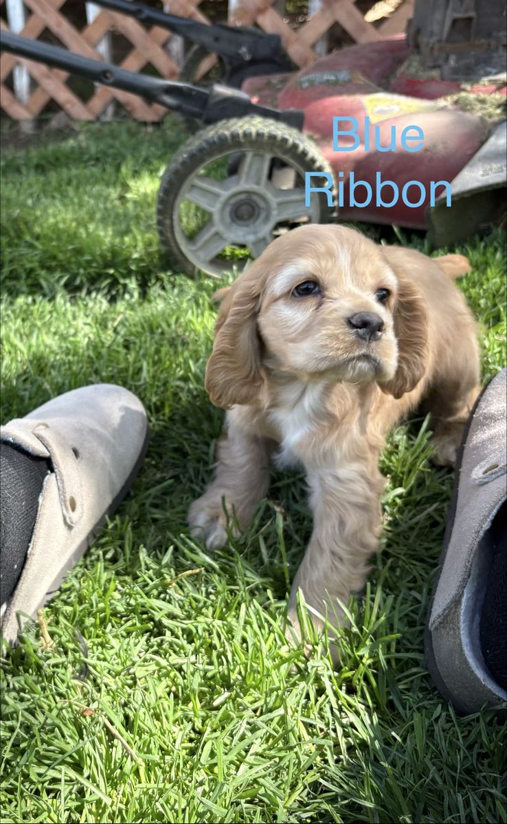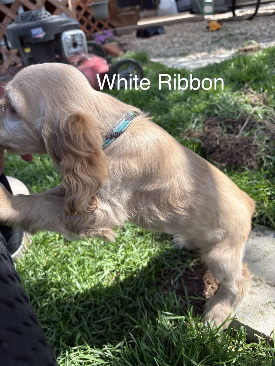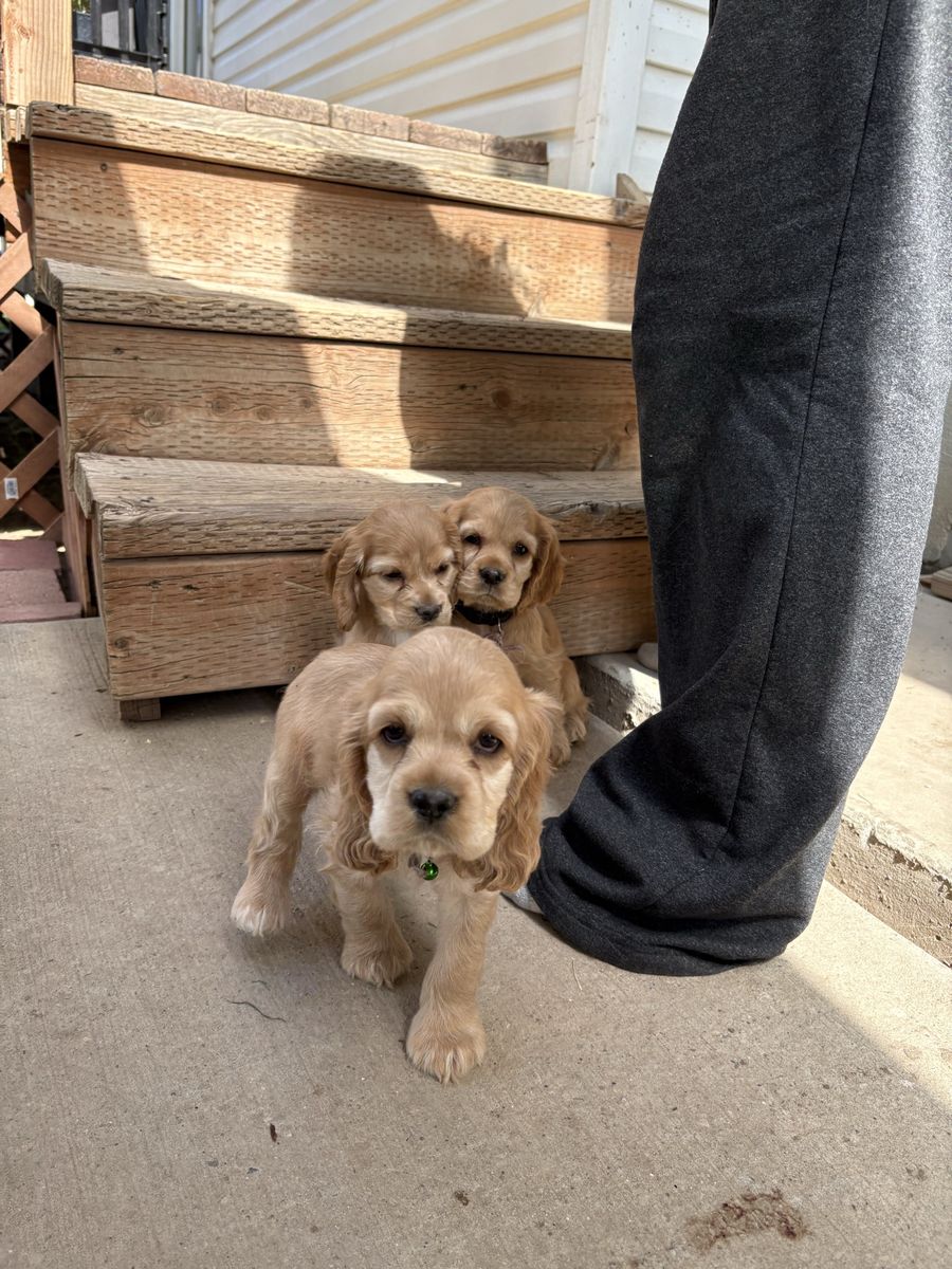 Venmo2 puppies left, READY NOW! Just in time for Easter! Purebred Cocker Spaniel puppies. Born on February 11, are 7 weeks old. They have their first shots, tails docked, and dew claws removed. 3 females, 1 male, all buff. Handled and loved daily, raised in our home! These puppies are amazing! Don’t miss out! Blue ribbon boy AVAILABLE White ribbon girl AVAILABLE Pink ribbon girl SOLD Tan ribbon girl SOLD Photos of mom, dad and grandparents included! Dad (Dutch) and mom (Brandi) are excellent family dogs with happy-go-lucky, friendly dispositions. Dad weighs about 25 lbs and mom around 15 lbs. Ready for a hike or to relax on the couch. Great beginner breed, extremely versatile and loving! Our dogs have exposure to chickens, cats, other dogs, and children. Will be in Clinton, UT around Easter. Based in Moab, UT. Can work to meet for delivery.