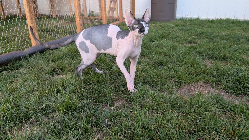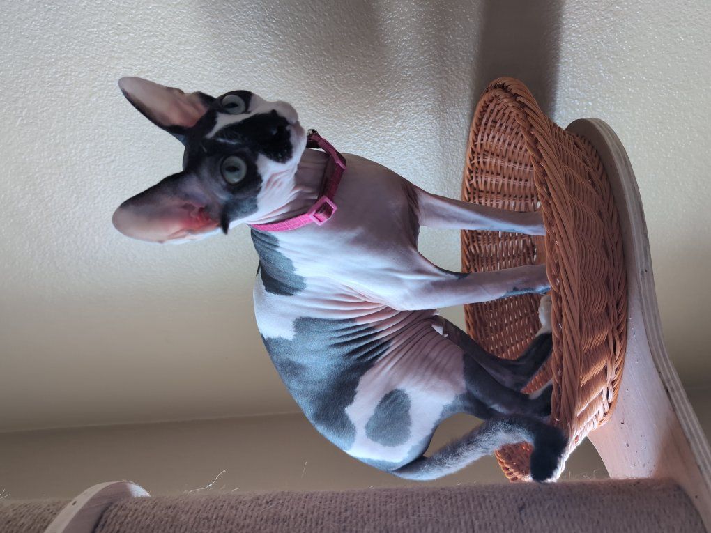 She is not a shy cat and does kind of watch is eat hoping for a scrap. She also will attack any dogs. we own Dobermans so she isn't unknown to dogs but doesn't particularly care for them. ideally she'd probably prefer being a single house cat and possibly having another litter or 2 before retiring her. She loves her kittens but we do have one of her past kittens and she now just tolerates her. Lilah also is toilet trained, but only pee. She has not learned to poop in the toilet yet.