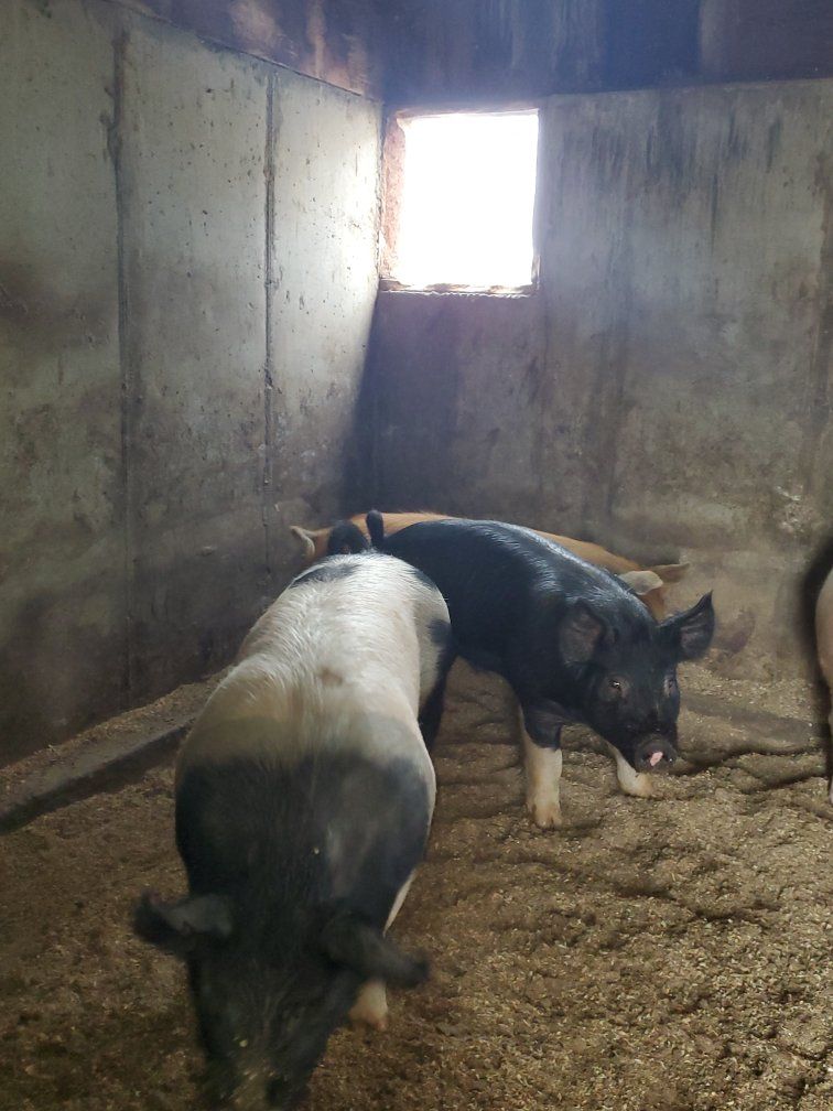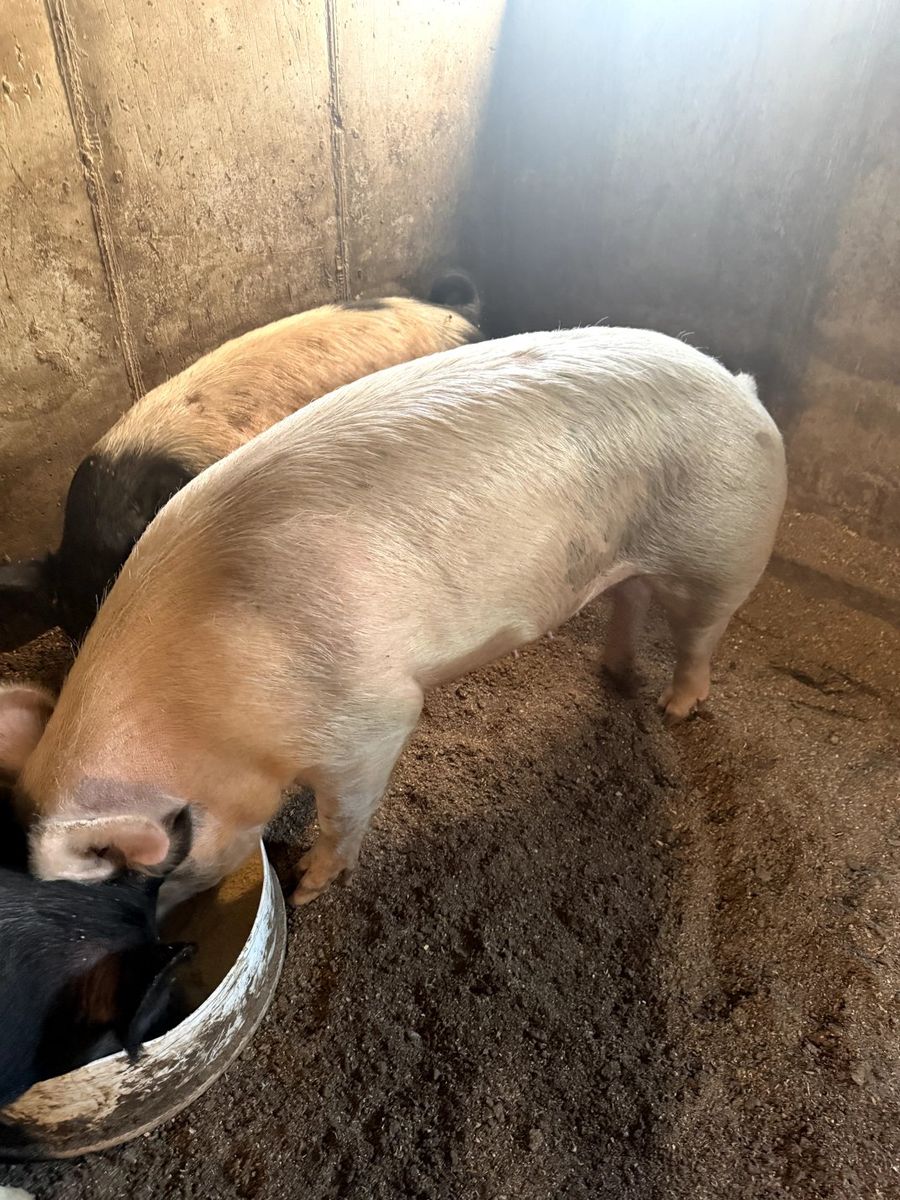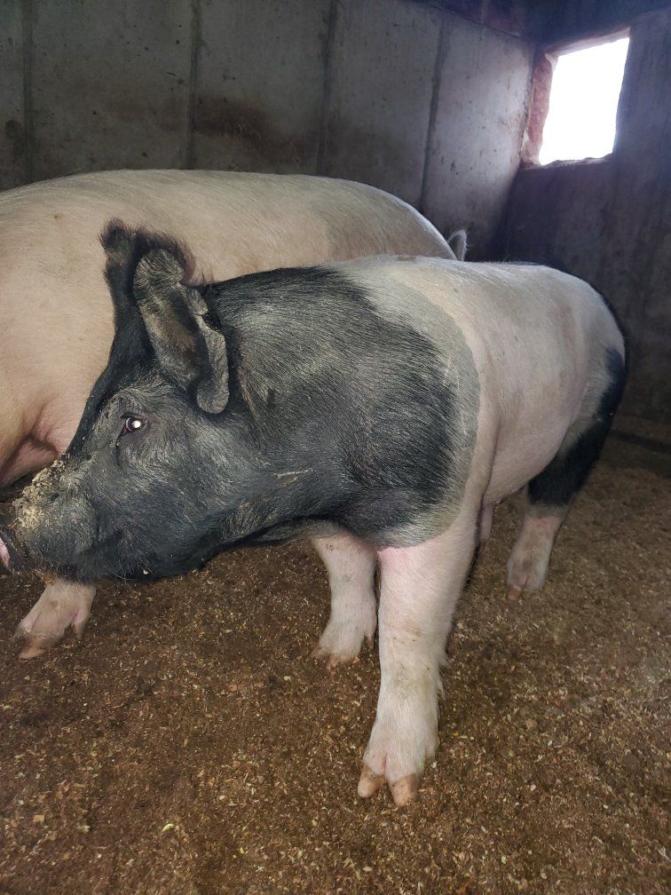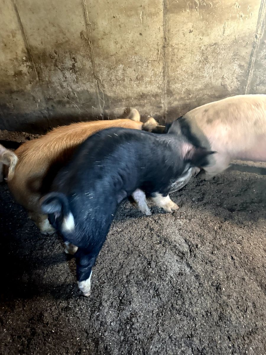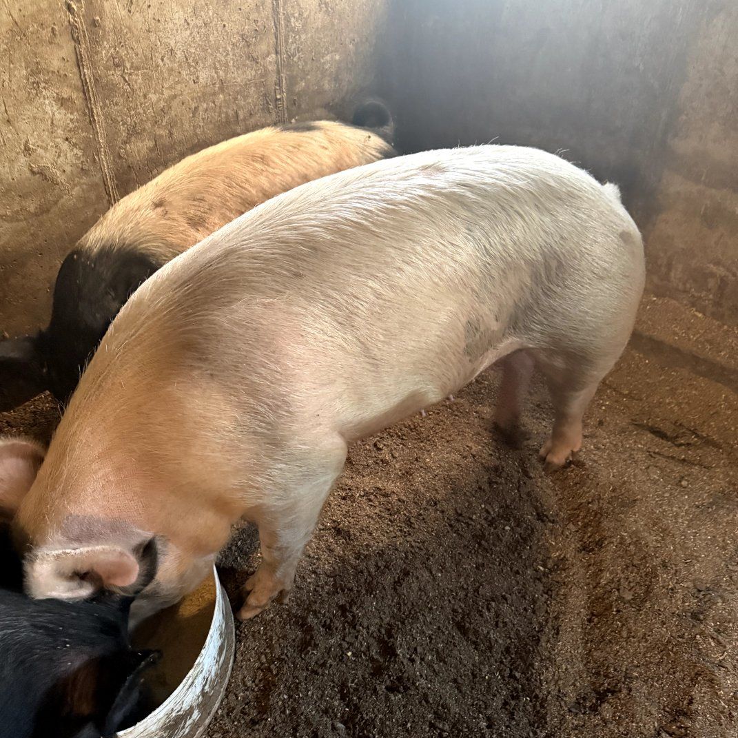 Hampshire cross meat hogs for sale. Healthy and well fed. Good size and growing fast. Pigs – Ready to Go! 801-801-3511 Solid, healthy pigs raised right. Grain corn fed, dewormed, and well cared for. Strong legs, good build, and filled out — they’re at a great stage for processing or homestead use.
