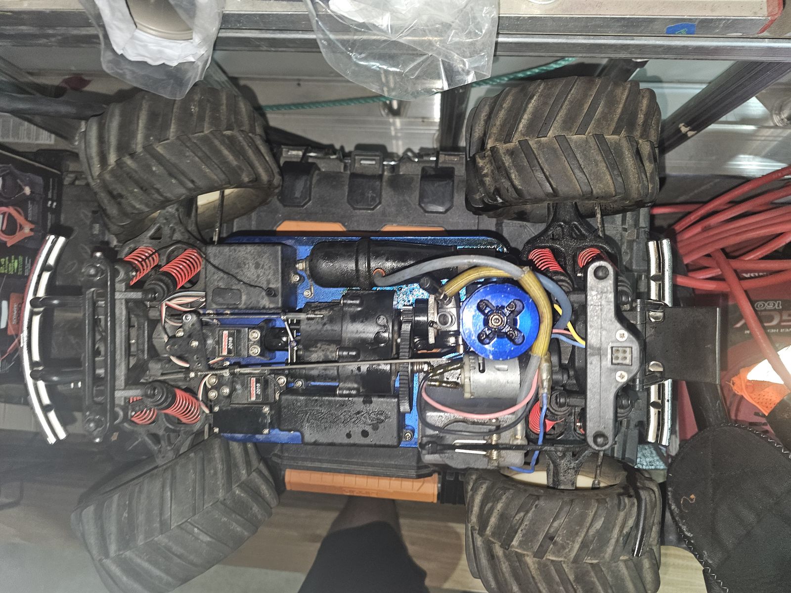 Looking to sale or trade for an electric rc car. Starts and runs only thing is when you set the car on the ground it doesn't want to go. But when you lift it up the wheels will spin fine. Dont know whats wrong with it tbh.