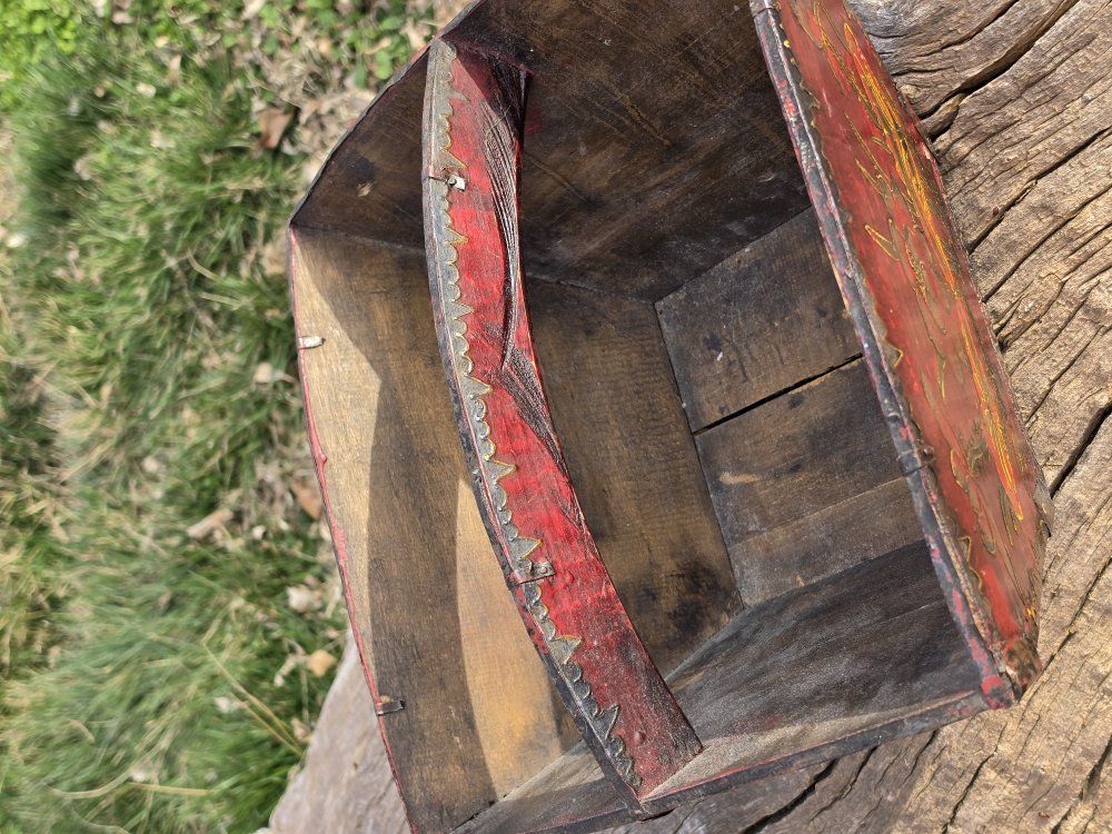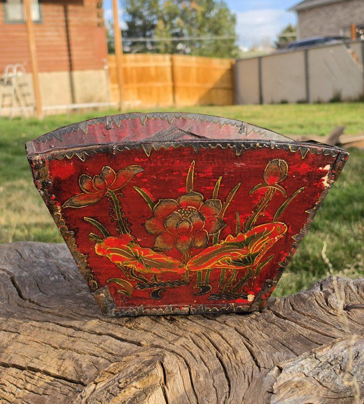 VenmoBeautiful 100+ year old Japanese rice bucket also known as a dou. These were used to measure rice, and often were able to float on the water as they harvested said rice. The flowers and designs are hand painted! This hucket is in wonderful condition considering the age. Please message me with any further questions! I'd love to earn your business!