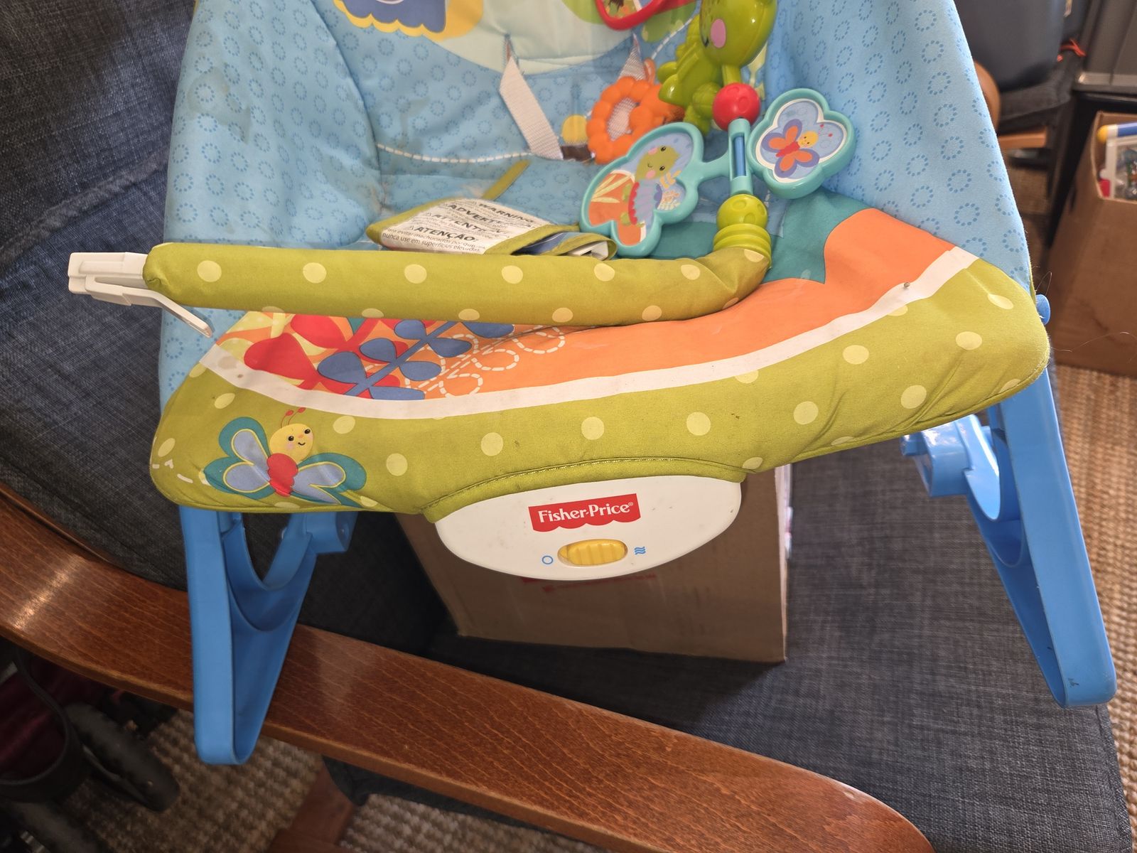 Some signs of use, but looks great! Baby loved this chair.