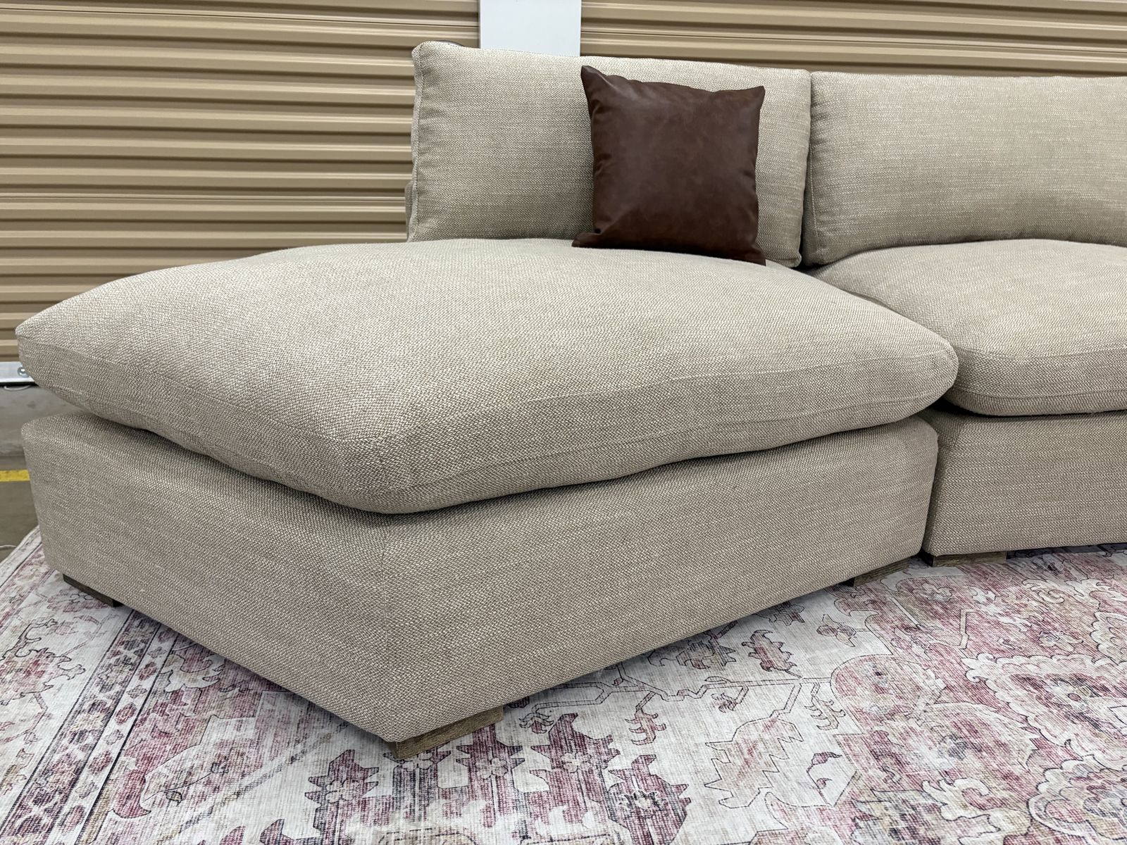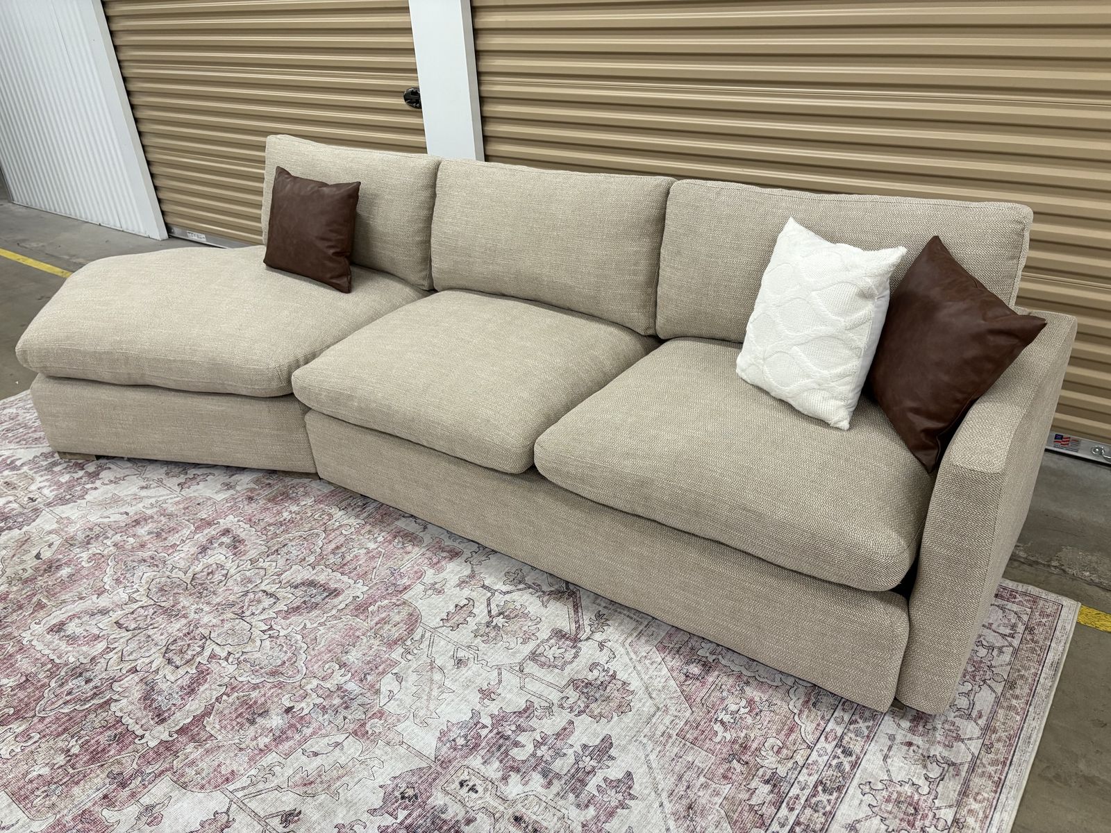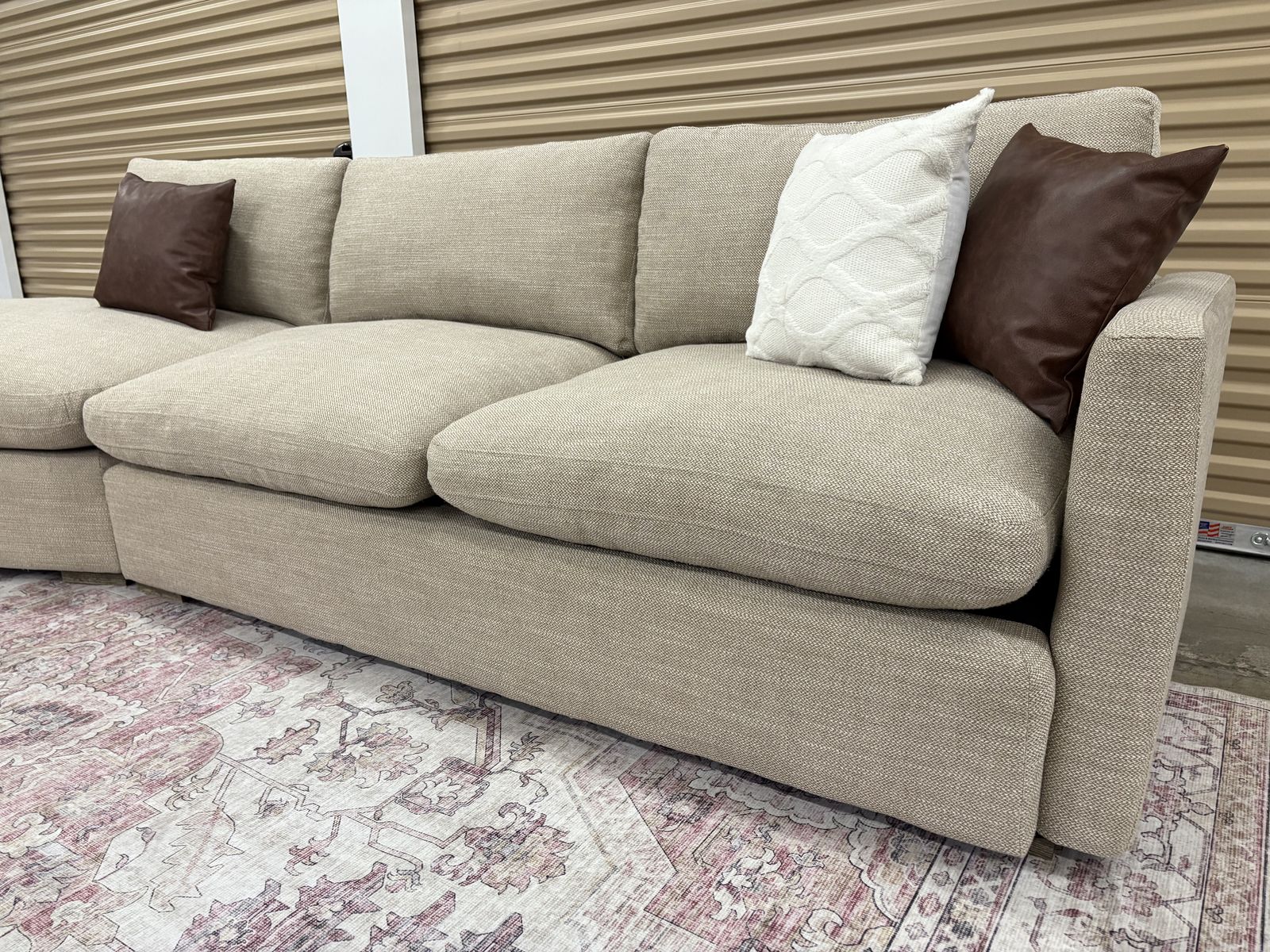 Beautiful designer sectional in excellent condition. Very comfortable with deep “cloud style” cushions that are perfect for lounging. Neutral beige color that matches almost any living room.