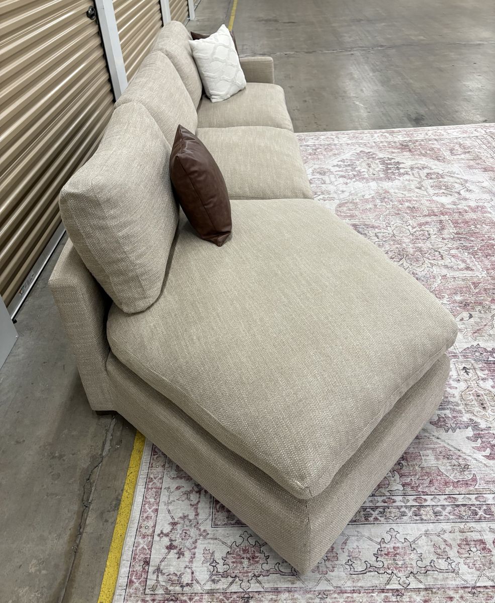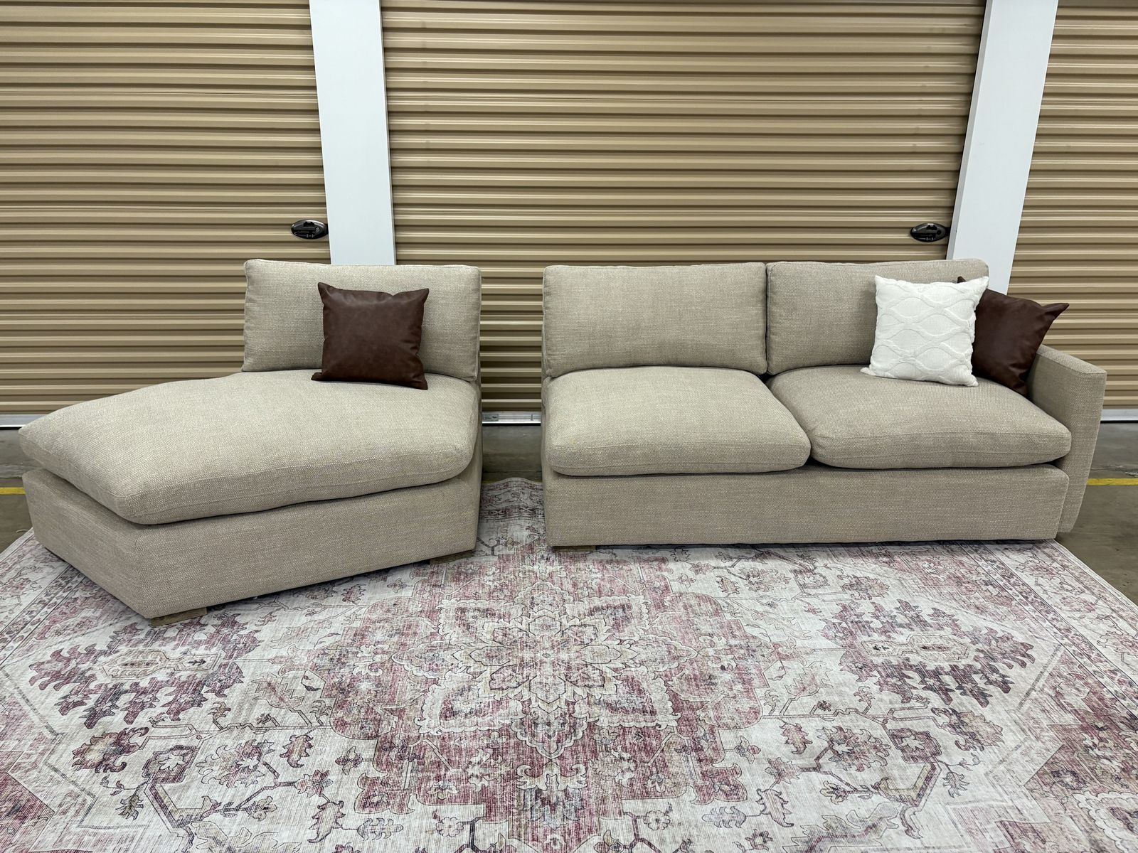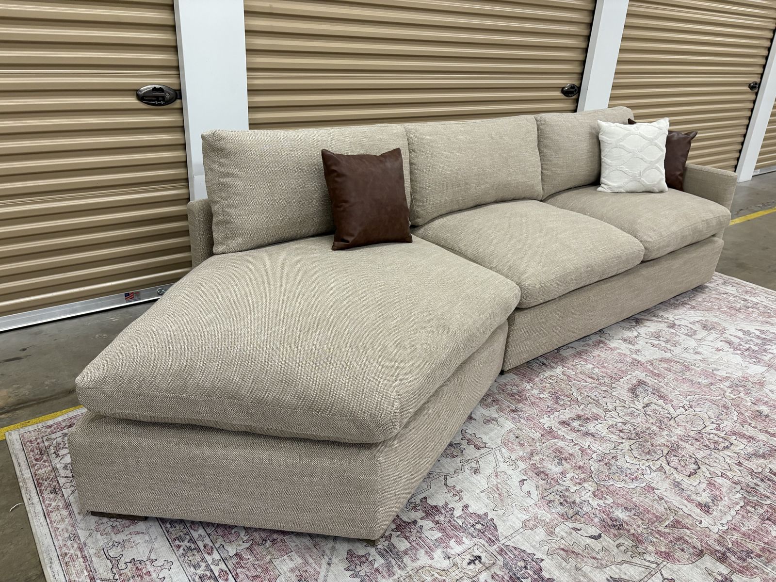 Beautiful designer sectional in excellent condition. Very comfortable with deep “cloud style” cushions that are perfect for lounging. Neutral beige color that matches almost any living room.