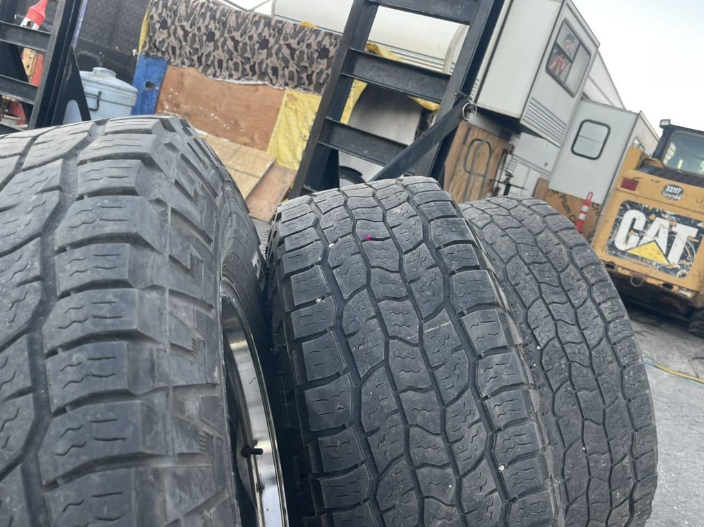 COOPER EXPLORER AT3 XLT TIRES I had these on my F250 These tires are in excellent shape still. I hit a new semi rim on the 201 that fell off a delivery truck with my right front wheel and tore up one of the tires and gouged the rim. So I bought a new set a size taller and wider. I’m selling these two and keeping one for a spare. Or if you want all three tires and all four wheels I can do that to. They were $1400 new for the set. I am asking $150 per wheel/tire. Will only sell two or all four wheels and three tires. The fourth wheel I think will still work and would be free. Text is best