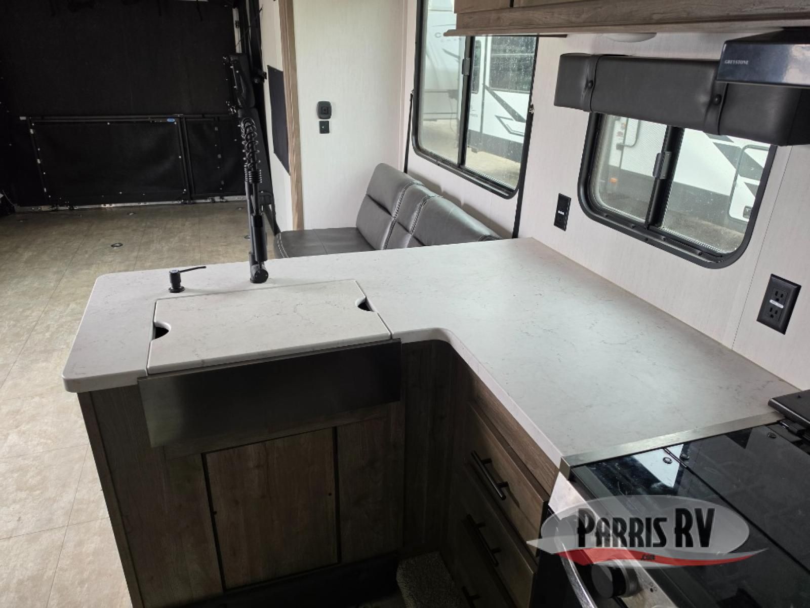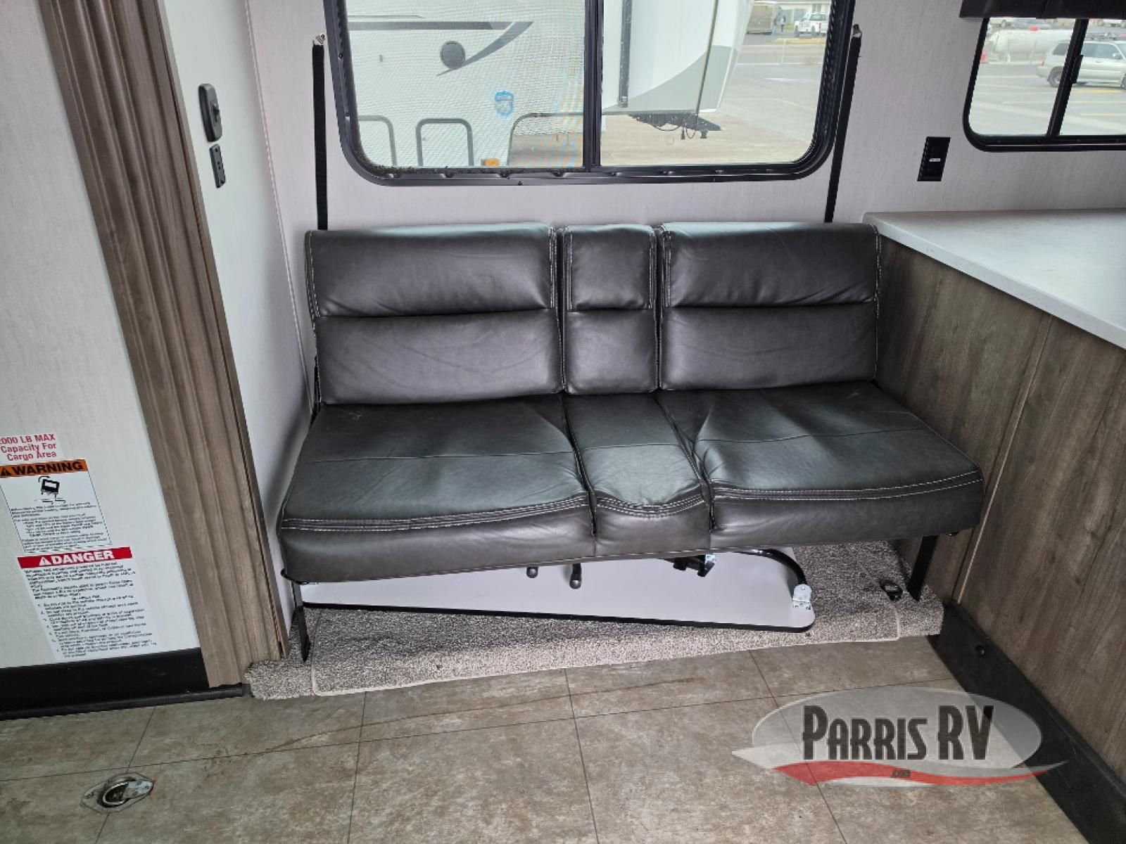 Bring along your kayaks, dirt bikes, or even a side-by-side in this toy hauler. There is 15' 10" total garage space, and a ramp door for easy unloading. Once your toys are out, enjoy lunch at the roll-over sofas, or let your guests rest on the quick set queen bed system before heading out. There is a dual entry bath to clean up in each day, and the Rogue king bed is sure to bring sweet dreams. In the morning, prepare eggs and bacon on the three burner cooktop, and the milk can go back in the 10.1 cu. ft. residential refrigerator. This model also includes a flip-up sofa for more seating and sleeping space, and you can add the optional lounge chairs too!