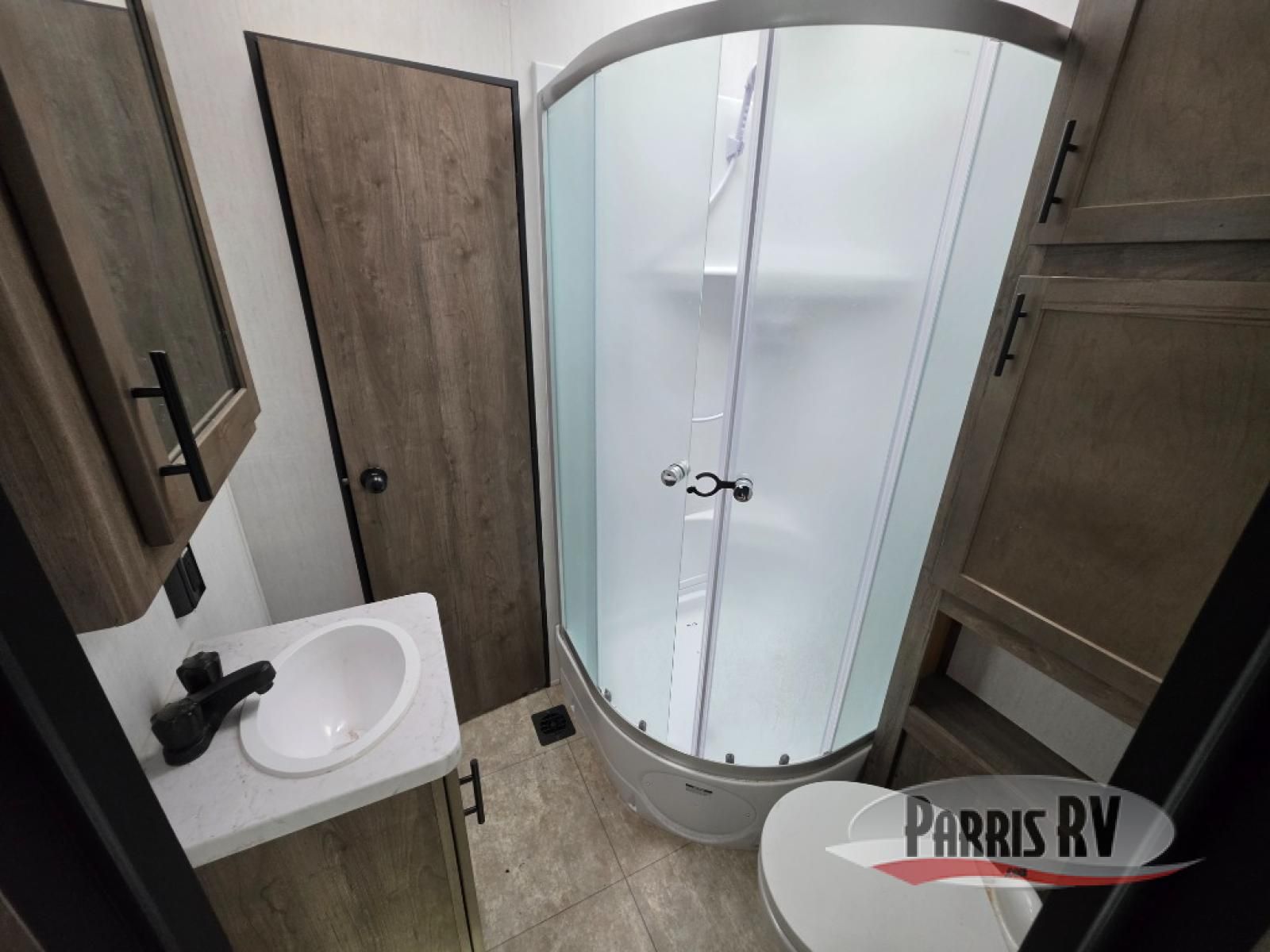 The Vengeance Rogue by Forest River is a budget-friendly toy hauler that you can really get on board with! Some of the features within the Rogue Platinum Package are the zebra shades that will keep light out, a glass shower enclosure, ultracold heated holding tank pads, and much more. There is an outside shower with hot and cold water so you can fill the dogs water bowl or wash the mud from your riding gear, and the enclosed underbelly will allow you to extend your camping season. You will love the look of the residential black stainless steel farm sink, along with seamless countertops and LED interior lighting with accents.