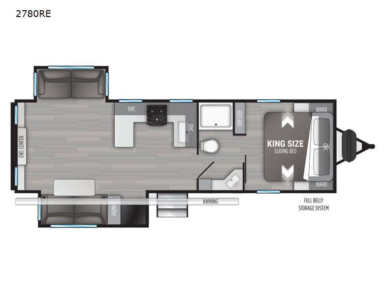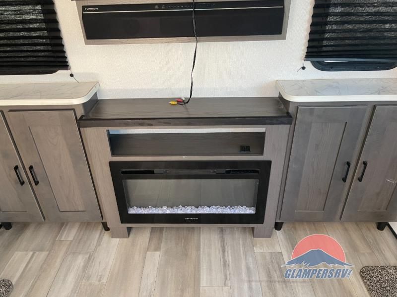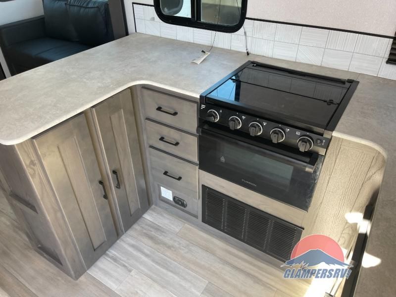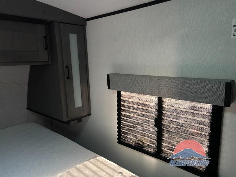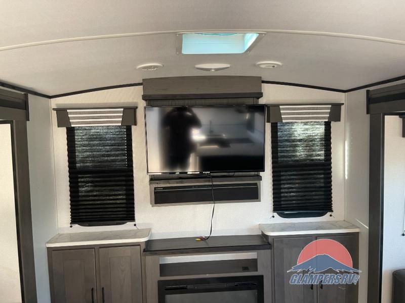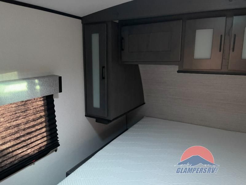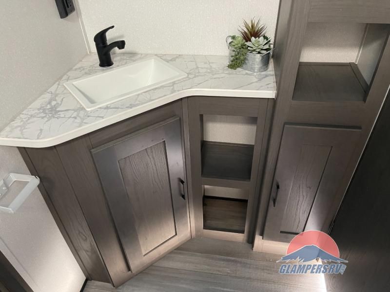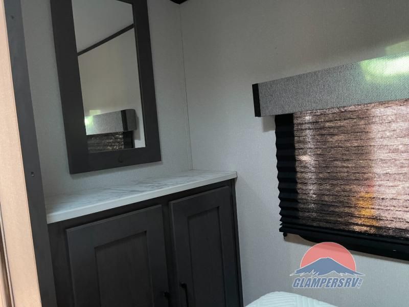 The thing that you are going to like best about this MPG travel trailer is the spacious rear living area! This part of the trailer has a rear entertainment center and a set of opposing sofa slides, and since this section is also adjacent to the kitchen, you can sit in one of the two bar stools at the breakfast bar while still being a part of the living area. Having a walk-through bath is convenient because it means that you can access the bathroom from the main living area or from the comfort of the front private bedroom, and having a king-size bed in the bedroom means that you will be able to sleep in supreme comfort each night.