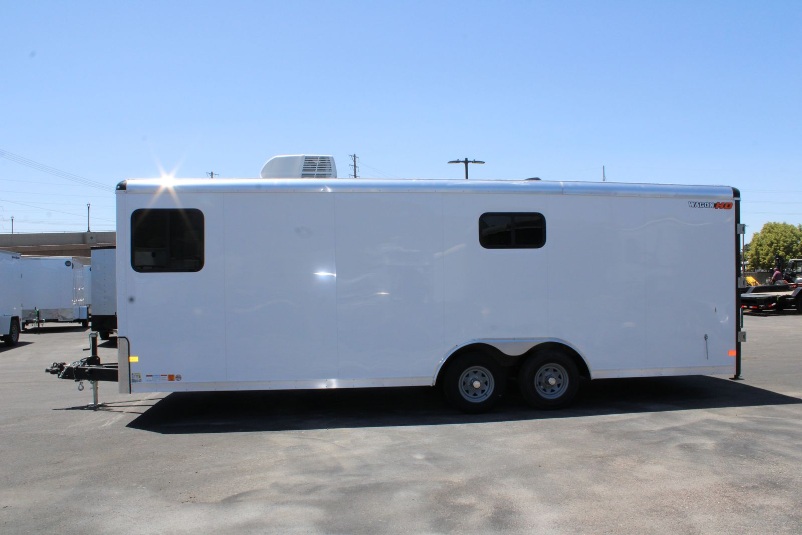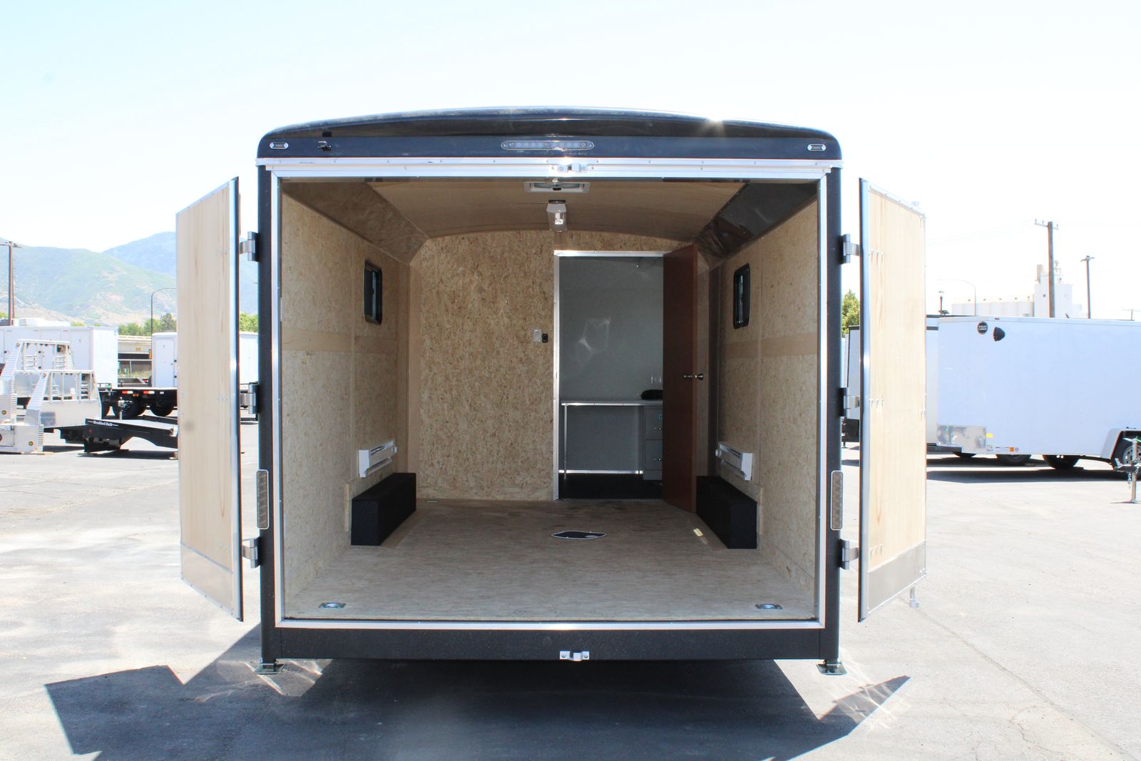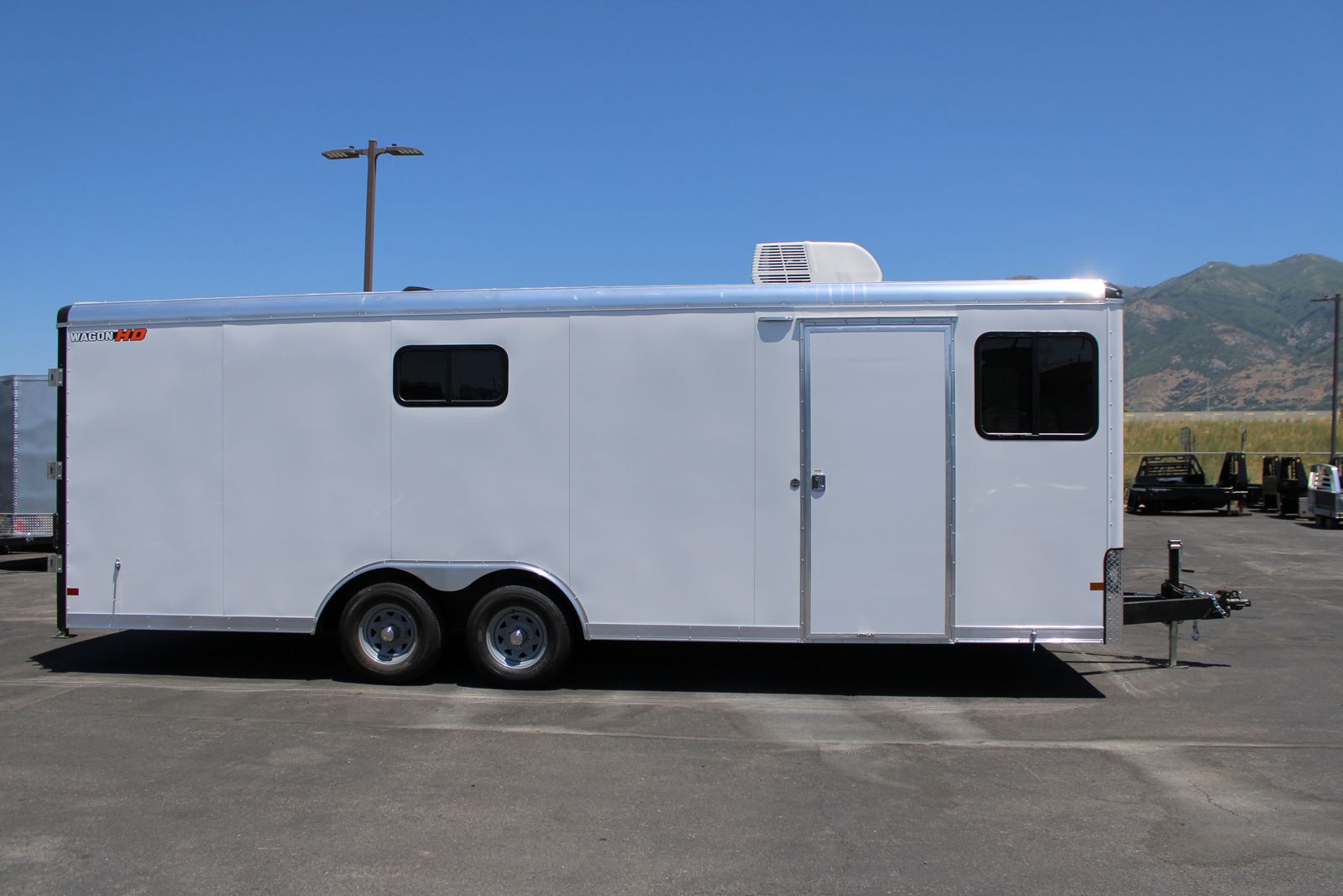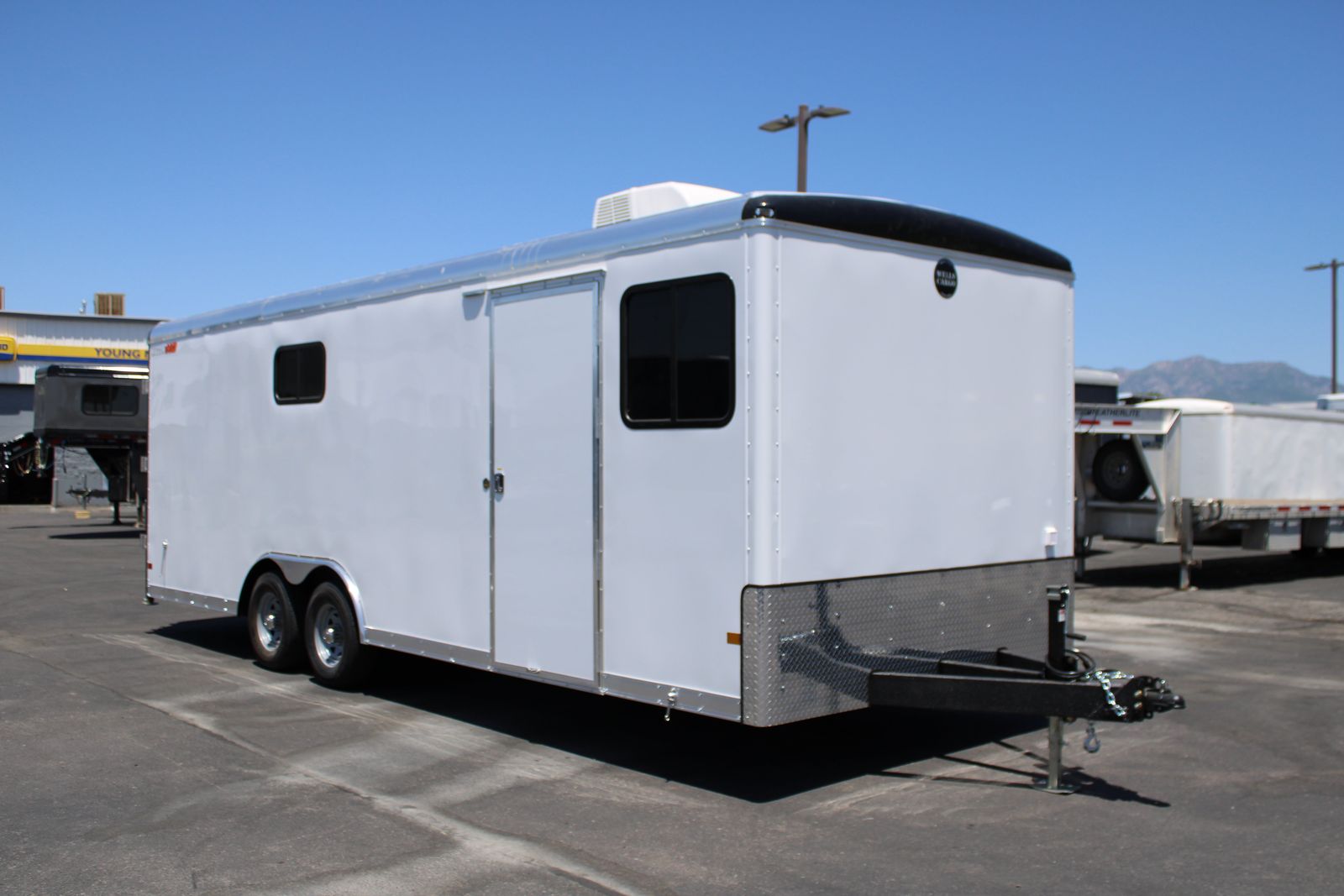 TRAILER SPECS: -21” Platform Height -Electric Drum Breaks -5,200 lb Tandem Axels -16" OC C-Channel Crossmembers -16" OC Tube Vertical Posts -16" OC Tube Roof Bows -ArmorTechTM on A-Frame, Rear Hoop and Interior Wheel Boxes -36"W Side Entry Door YOUNG TRUCK AND TRAILER SALES | KAYSVILLE HOURS:Mon - Sat | 8 am to 7 pm PHONE:(801) 447-2753 LOCATION:220 North 650 West, Kaysville, UT 84037 www.youngtruckandtrailer.com\