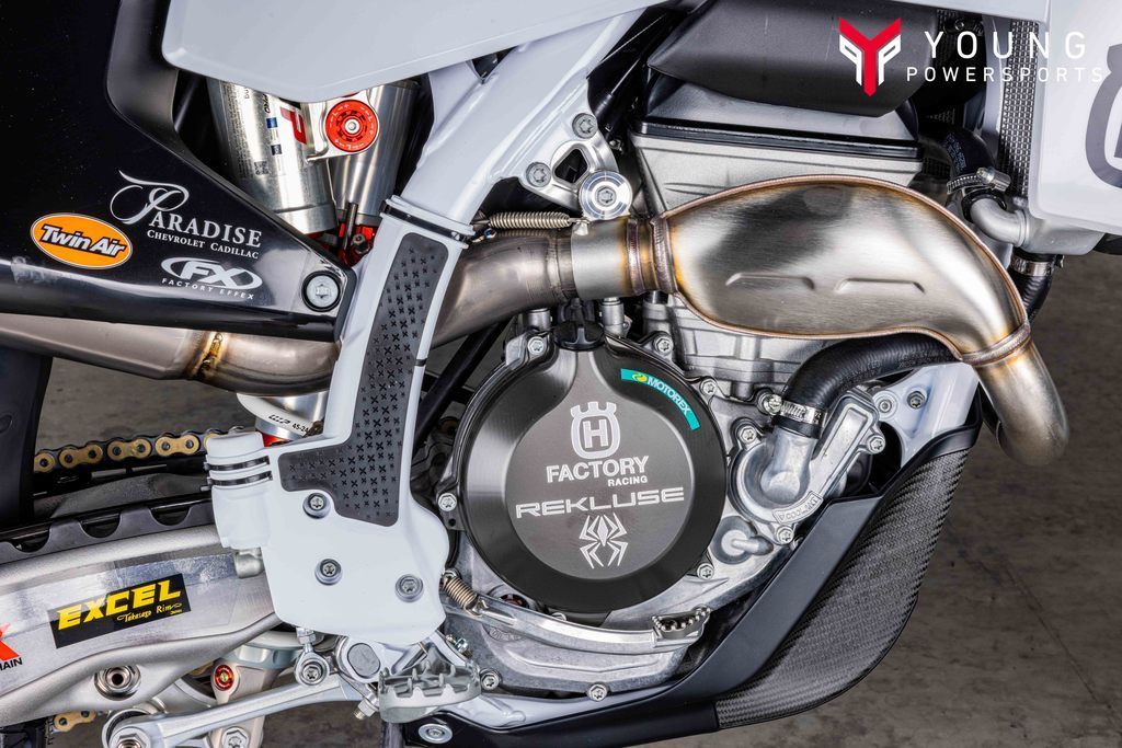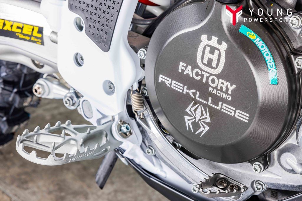 The remarkable FC 250 Factory Edition is a competition-focused machine that sets the standard for performance. For the first time, this special-edition model features premium WP Pro Components suspension, with XACT Pro 7548 Cone Valve forks and an XACT Pro 8950 rear shock, providing precise damping and superior handling. Technical enhancements include a threaded radiator cap and a new fuel line protector. Besides the distinctive appearance delivered by the white powder-coated frame and latest Rockstar Energy Husqvarna Factory Racing graphics, the FC 250 Factory Edition offers a close connection between rider and machine through the Connectivity Unit Offroad (CUO). Using a smartphone with the intuitive Ride Husqvarna Motorcycles app installed, pre-set engine maps can be accessed or refined depending on circuit conditions. Adjustability options include the ability to refine the engine braking, Launch Control, Traction Control, and Quickshifter settings to create a truly personalized racing machine.