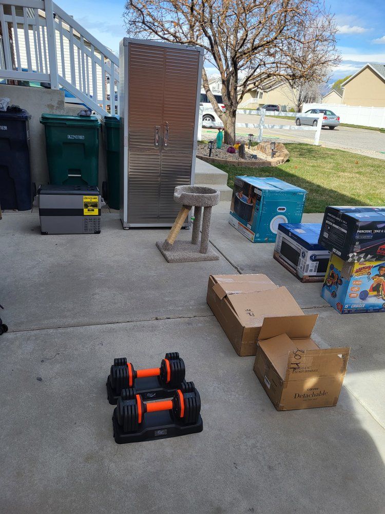 Metal Locking Cabinets- $160 to $280** Dining Chairs $45 Car Refrigerator 12V $200 7.0cu.ft Chest Freezer $140 Luggage 4ft Lifetime Table $35 Kids Ride On Toys Sheets Mattresses Mytee Tie Down Ratchet Straps $20 Each** Clothes Shoes- Skechers & UGGS Dish Soap $3 Each 2way Radios $50 40"TCL QLED Smart Tv $100 Much Much More ***