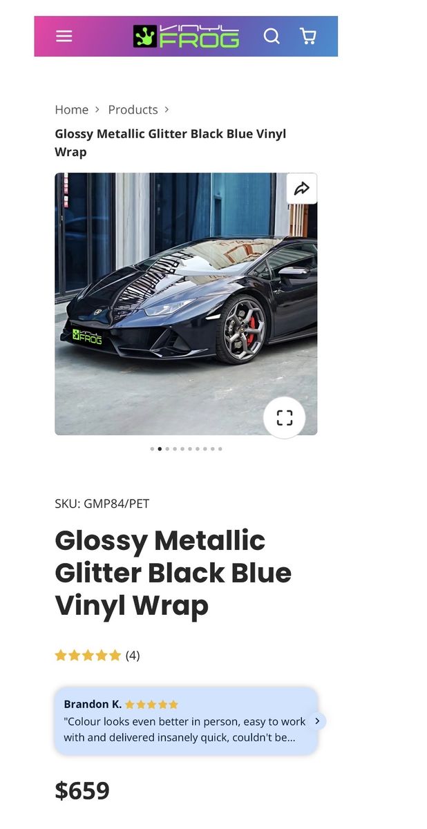 New Vinyl Frog Black Vehicle Wrap SKU: GMP84/PET Glossy Metallic Glitter Black Blue Vinyl Wrap