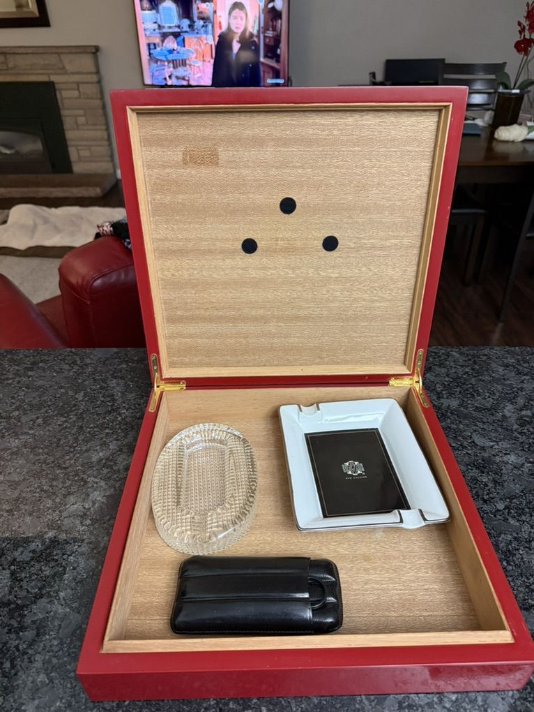 VenmoVintage Cabañas humidor. Beautiful condition. Includes two vintage ashtrays, cigar cutter and case.
