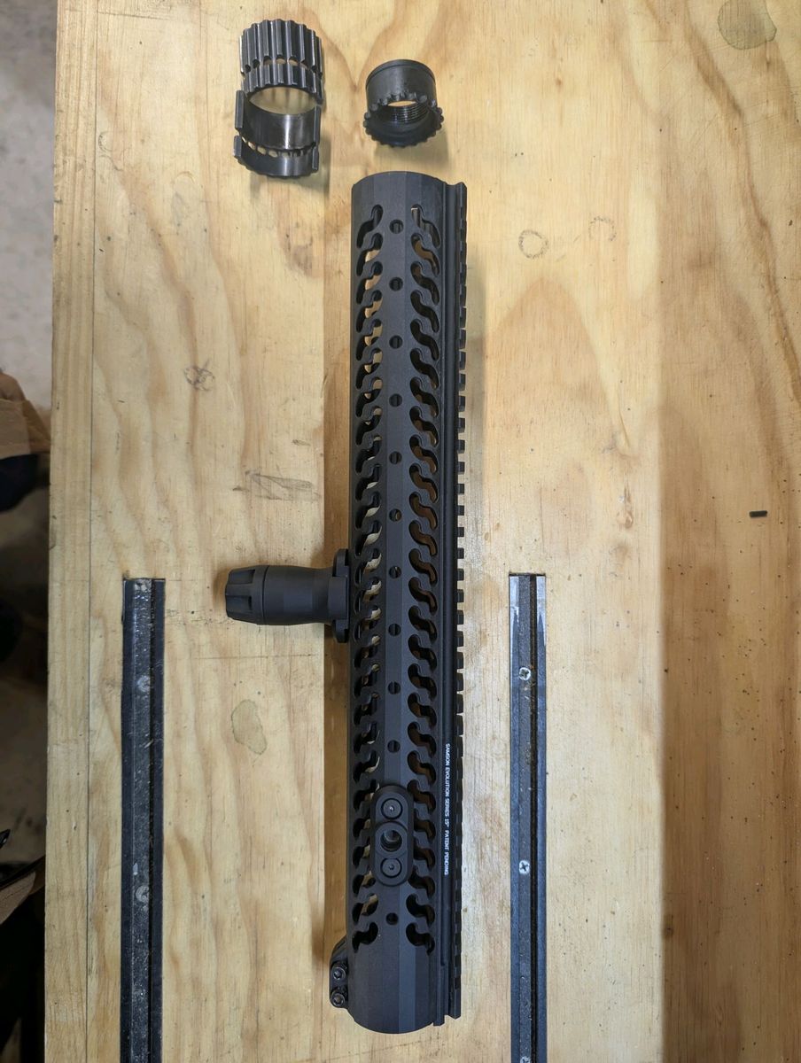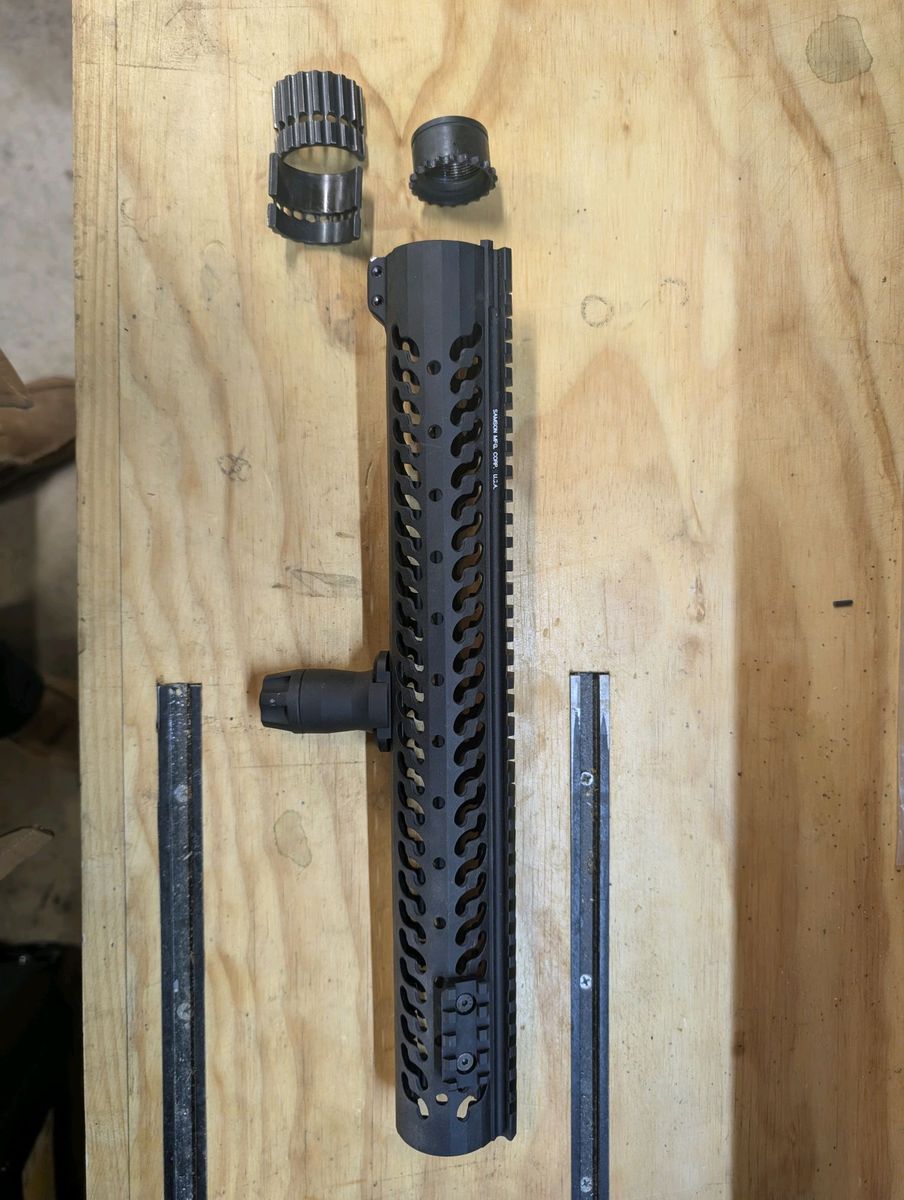 Venmo15" Samson Manufacturing free float rail with 3 rail attachments (1 installed), stubby front grip, and QD Sling attachment. New price ~$280