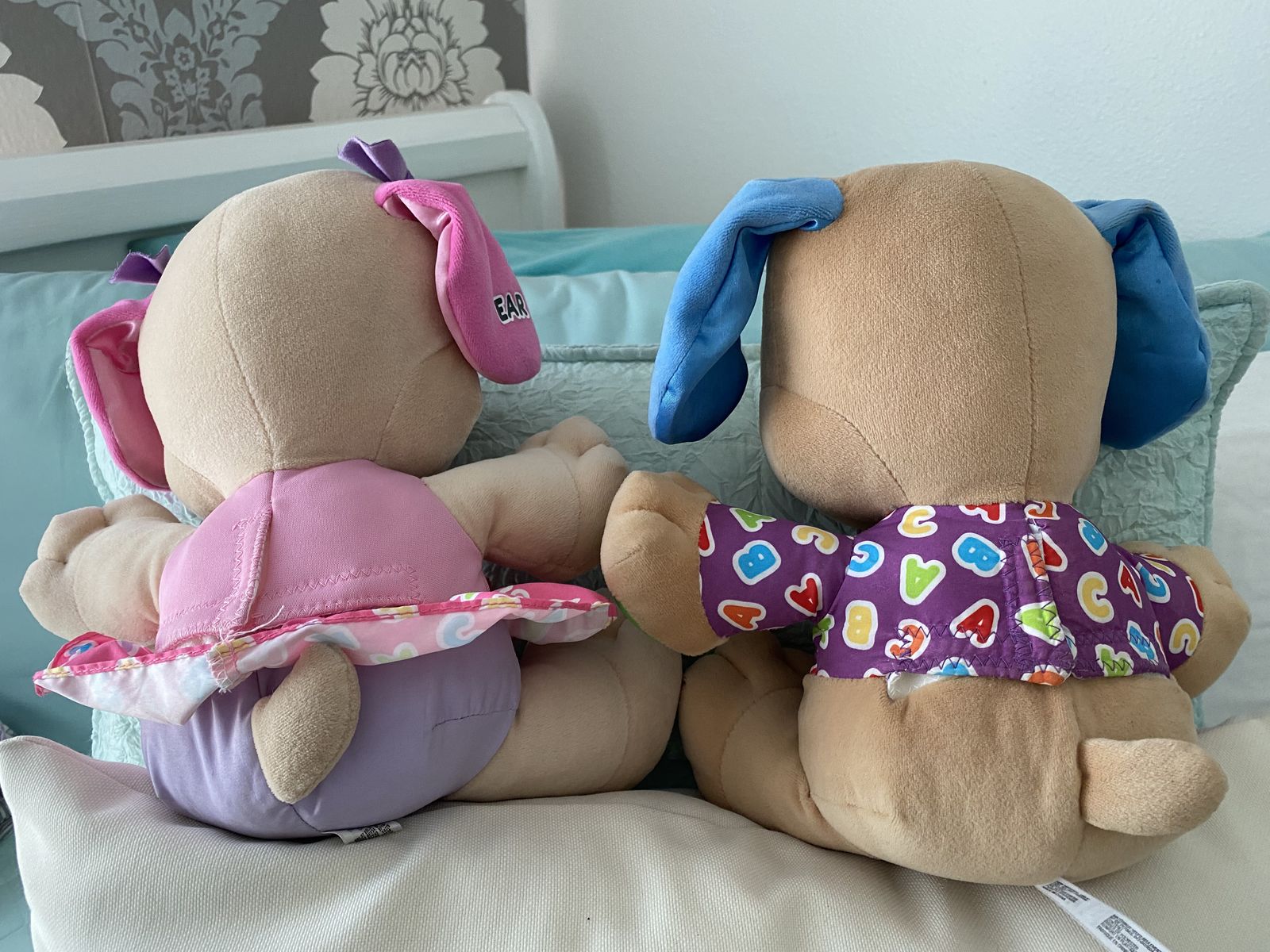 Fisher-Price Plush Puppies learning toy puppies that teach first words, songs, sounds, tunes and phrases. Laugh & Learn Smart Stages Puppies. Learning Educational Toys for Babies, Infants and Toddlers. Smoke free home. Lightly used at grandparents home.
