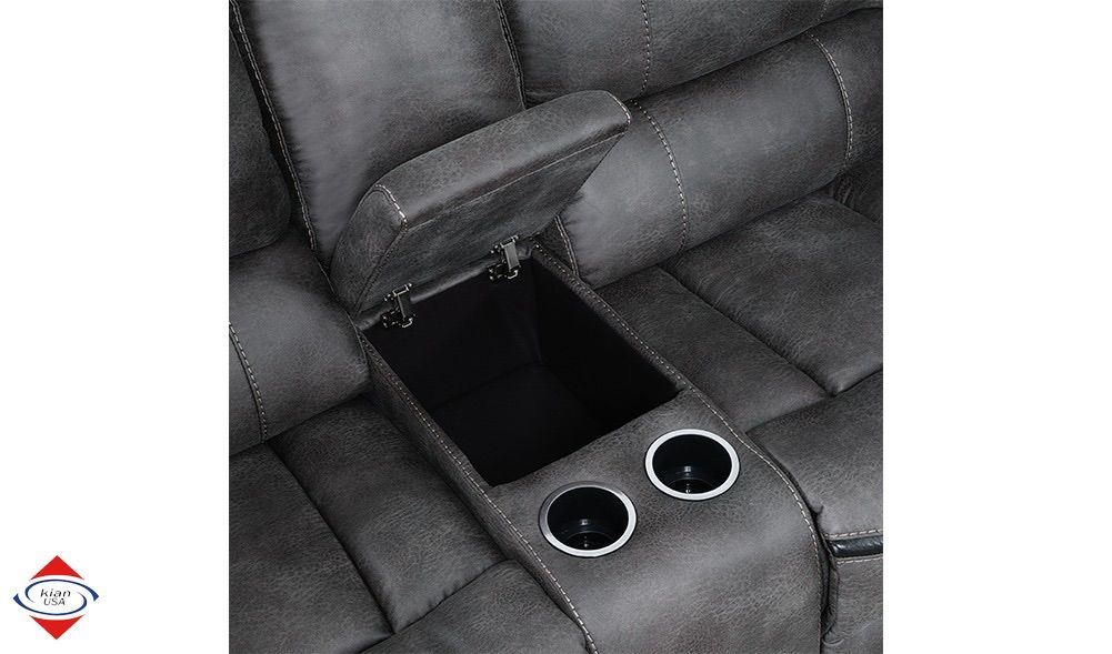 ApplePayThis sectional is a beautiful grey color, made out of a polished microfiber. Nice high quality material. It is a 3 piece reclining sectional with FOUR RECLINING SEATS. Measures 10.5x11 Depth: 37 inches Height: 40 inches