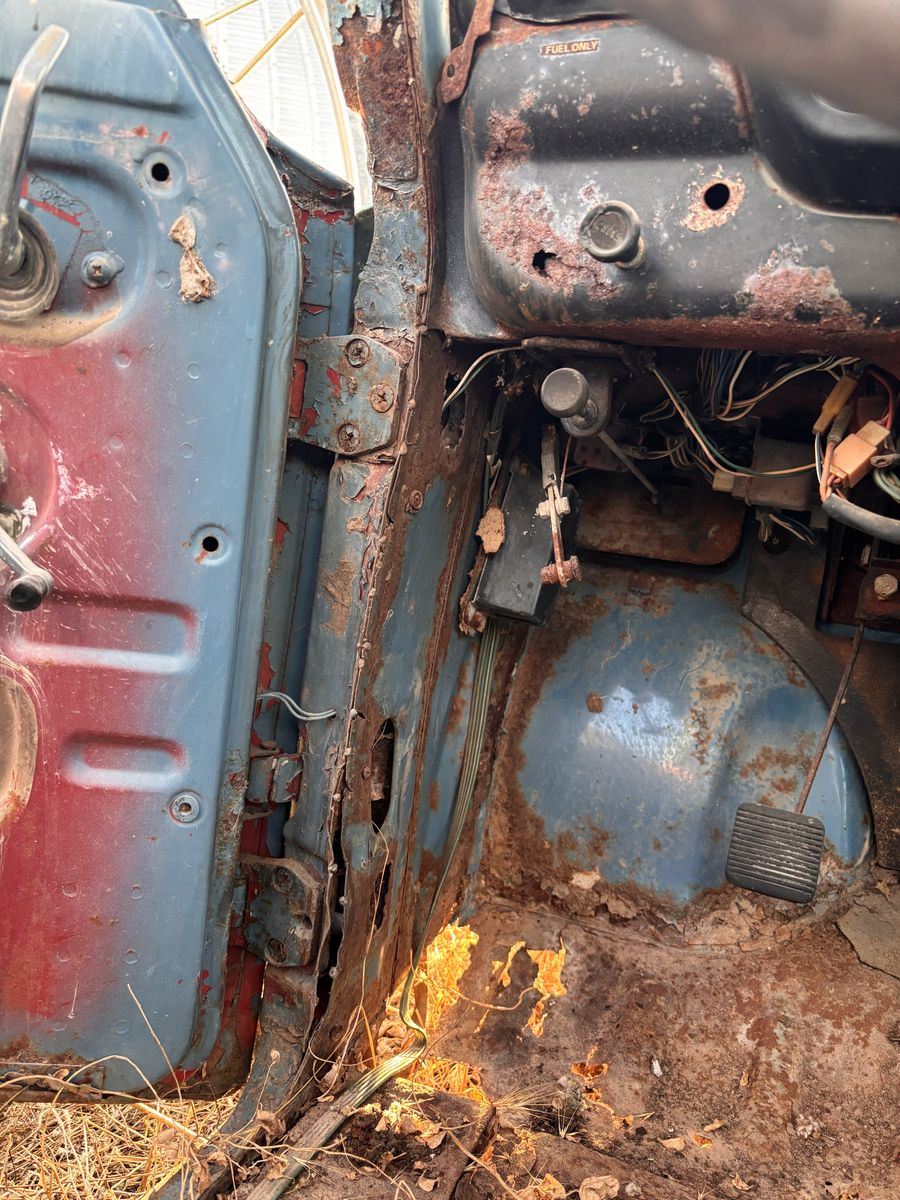 Clean title in hand, Firm at $500, lower offers will be ignored. Perfect for a body swap or rat rod build. No suspension or drivetrain. Bare OEM fully boxed frame rails with body mounted. Yes, it’s rusty (classic ford courier rust) comes with a visor that can be made to fit. Sweet patina. Can deliver for extra.