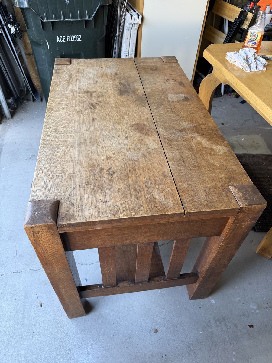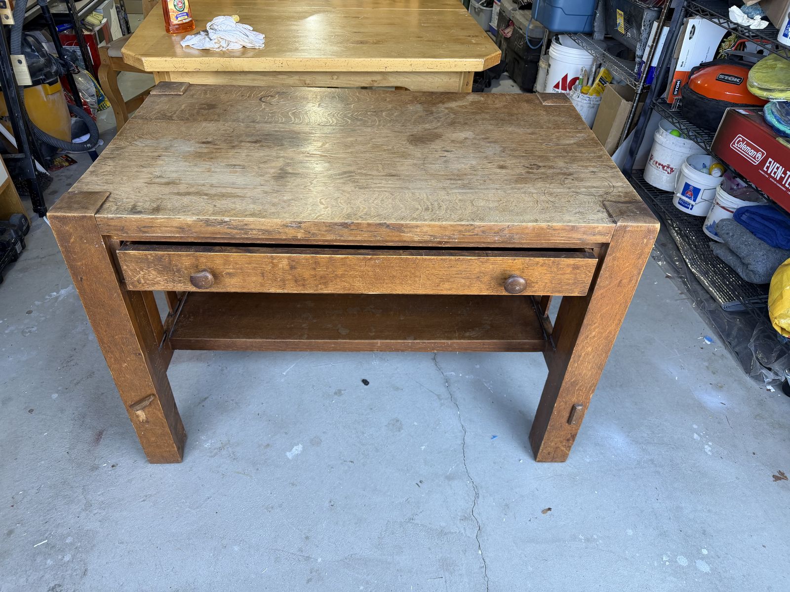VenmoOld school sturdy solid wood. With drawer. In decent shape. Has potential for refinishing. They don't make them like this any more
