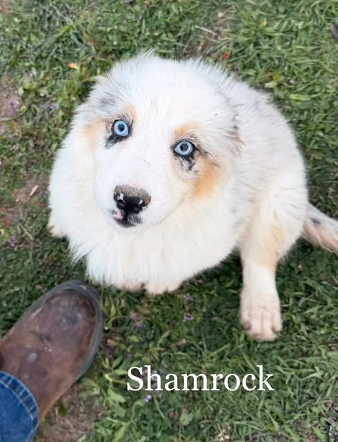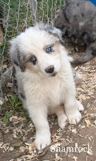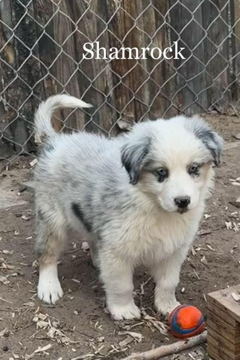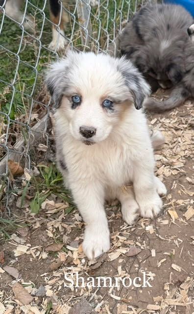 Shamrock - Blue Merle Female with 2 blue eyes $1,750 - Perfectly marked, very perceptive, she isn't afraid to be off by herself, very calm and quiet. Super happy and excited to see everyone.
