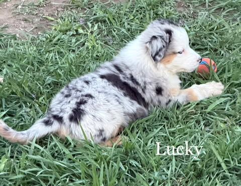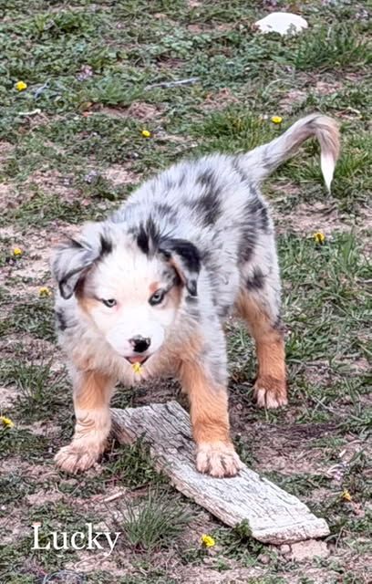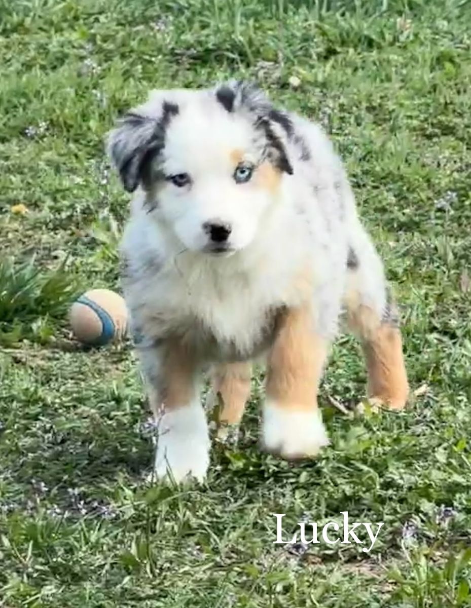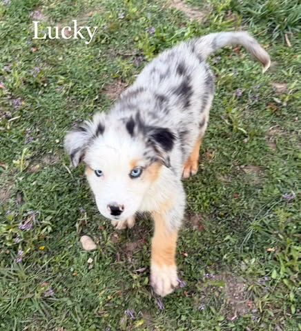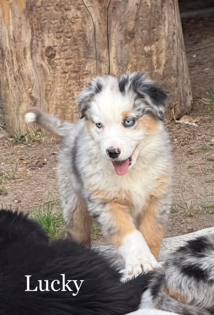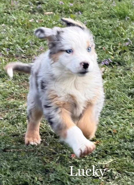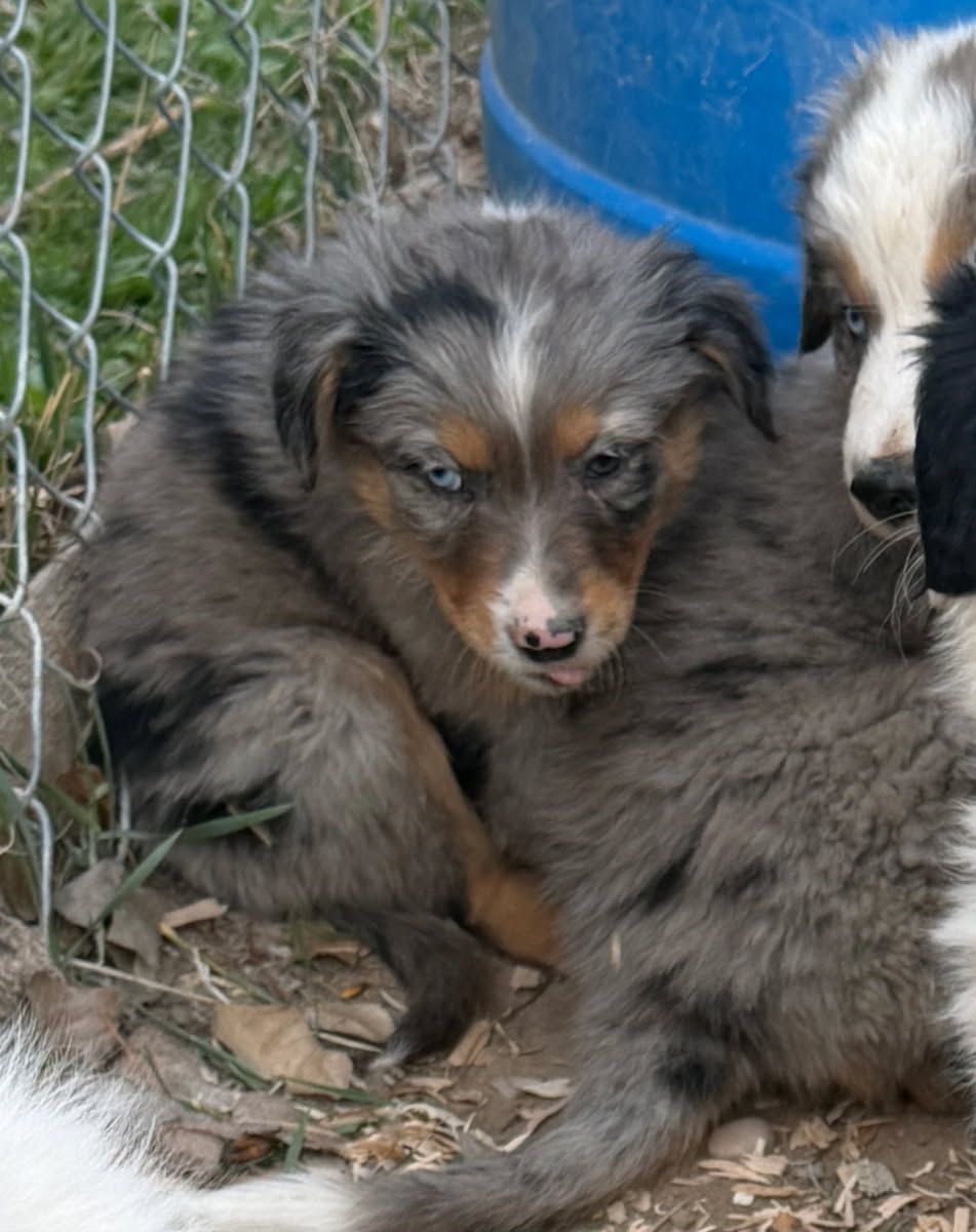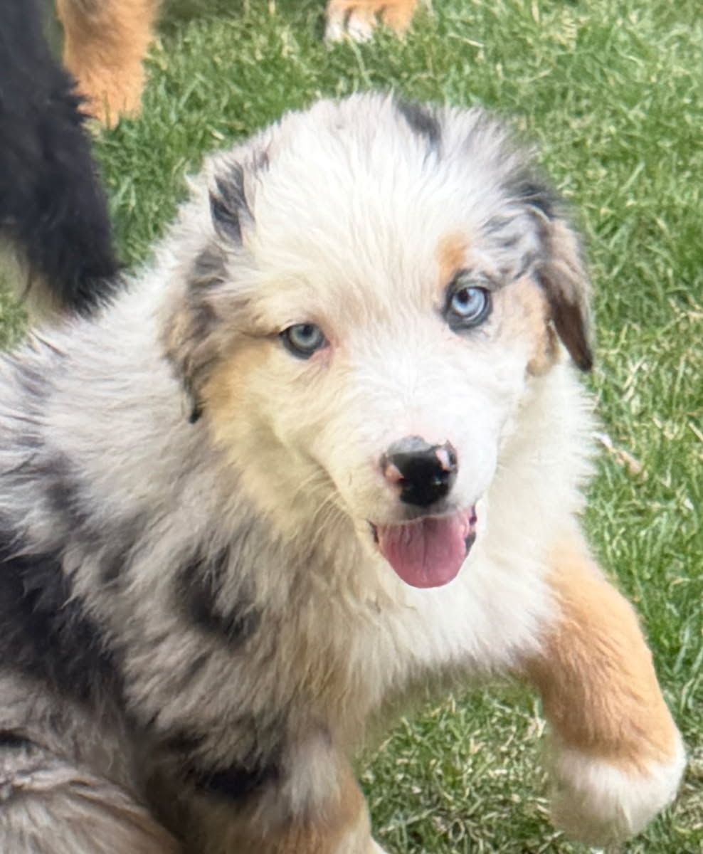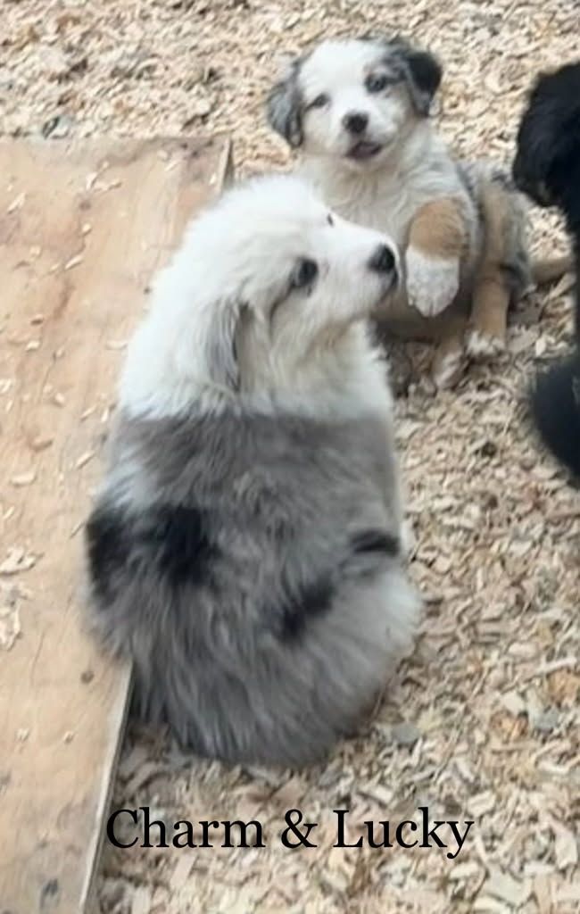 Charm - Blue Merle Male with 2 blue Eyes $1,750 - The Alpha male but chill about it. Aussies / Border Collies should be active, but Charm, well just as soon be your favorite couch potato :) Basically super chill floof ball.