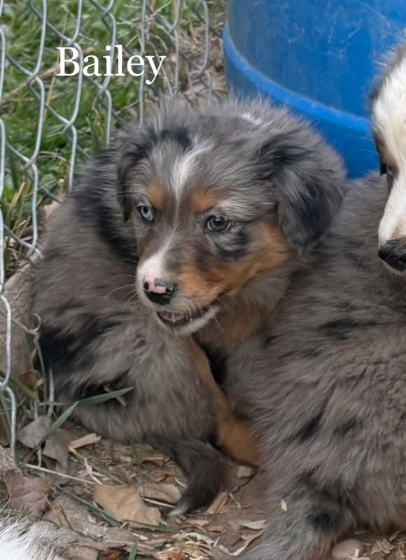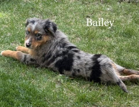 Bailey - Blue Merle Male with unique red highlights with 1 Blue Eye $1,750- the happy go lucky boy, who wants to please and is excited about life. Very unique coloring and will be on the smaller side.
