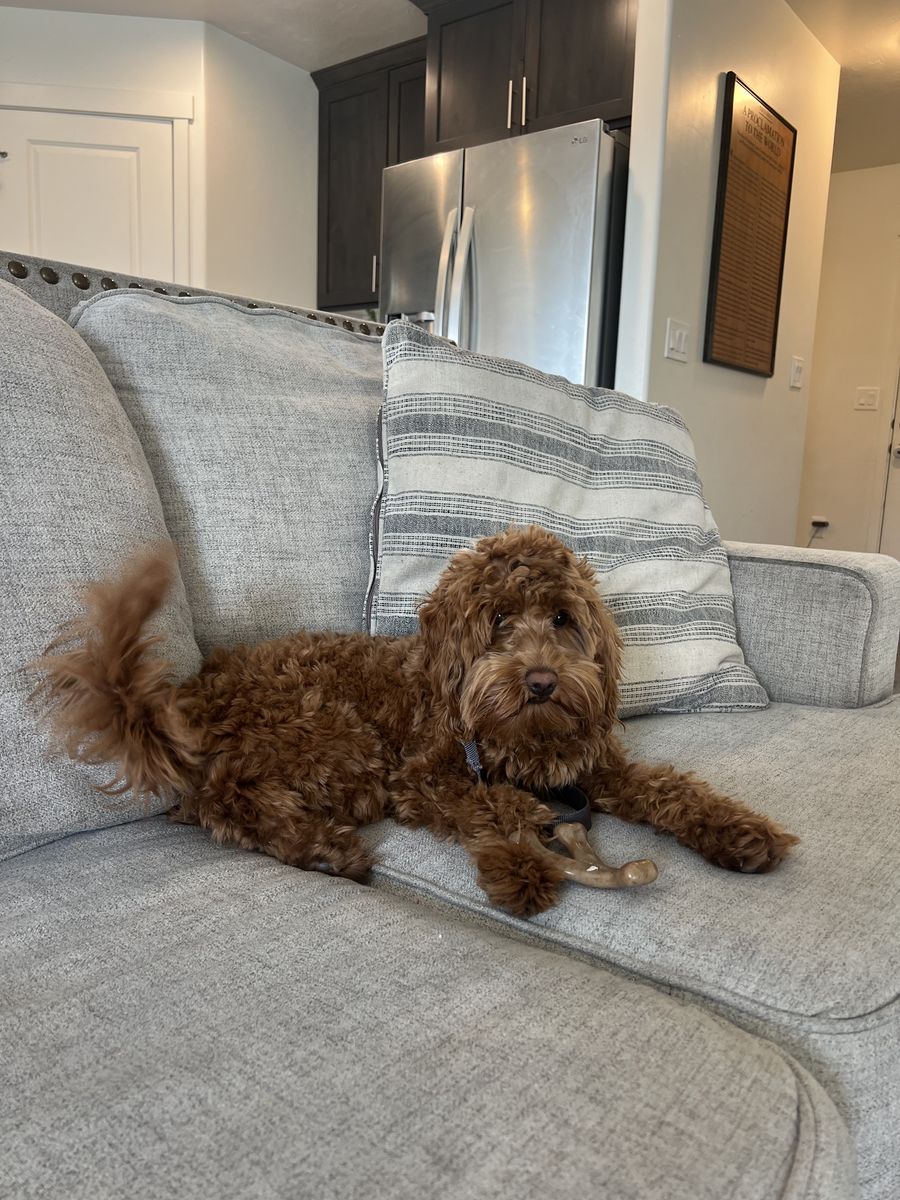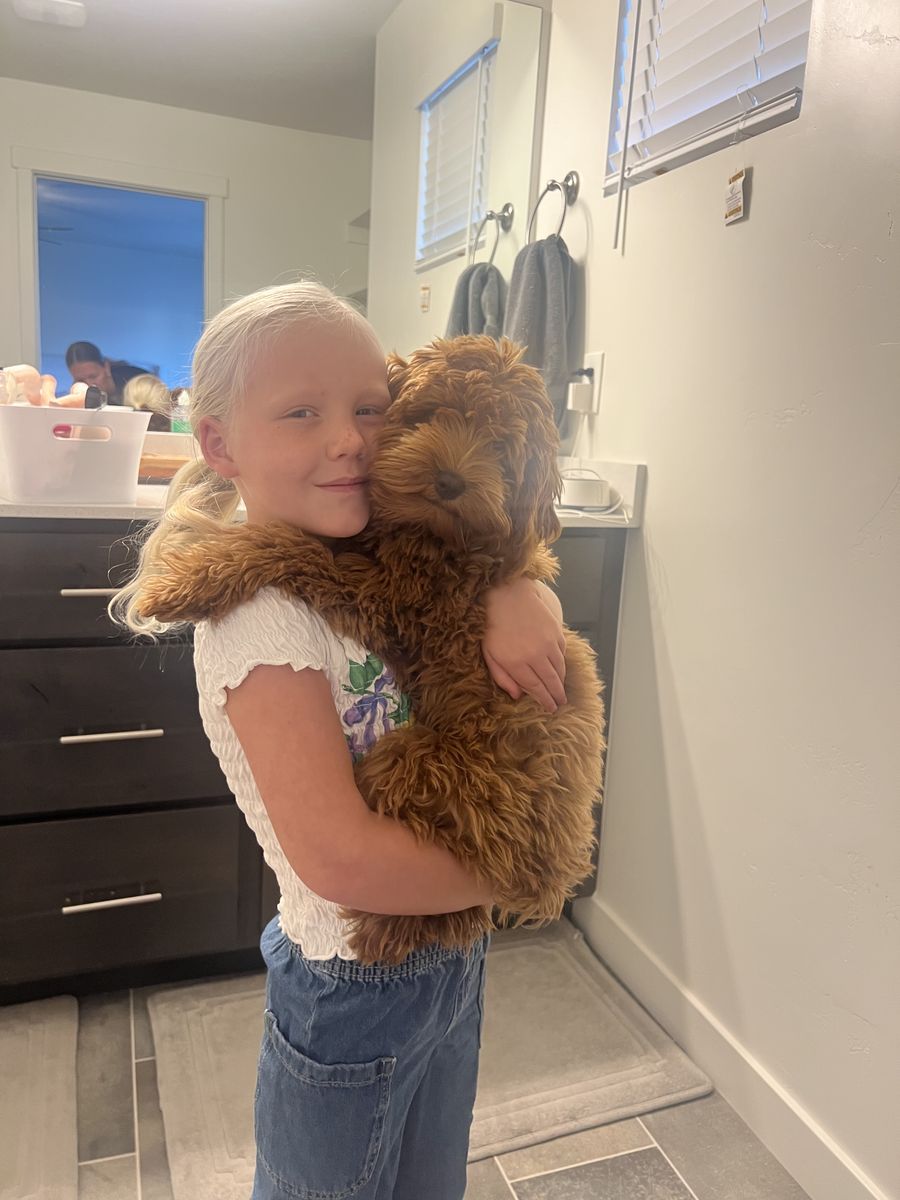 She comes from Pawsitvelyperfectpupco, a very reputable breeder who usually has a long waiting list, so this is a great opportunity if you’ve been hoping to get one of her pups. She’s spayed and up to date on all vaccinations. She is about 11 lbs and fully grown.