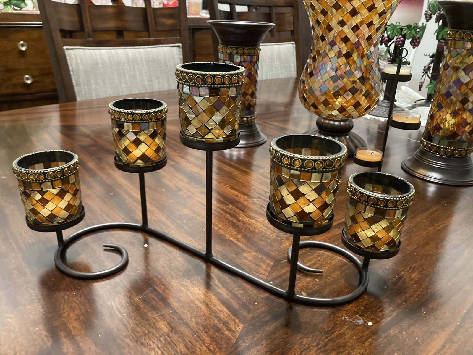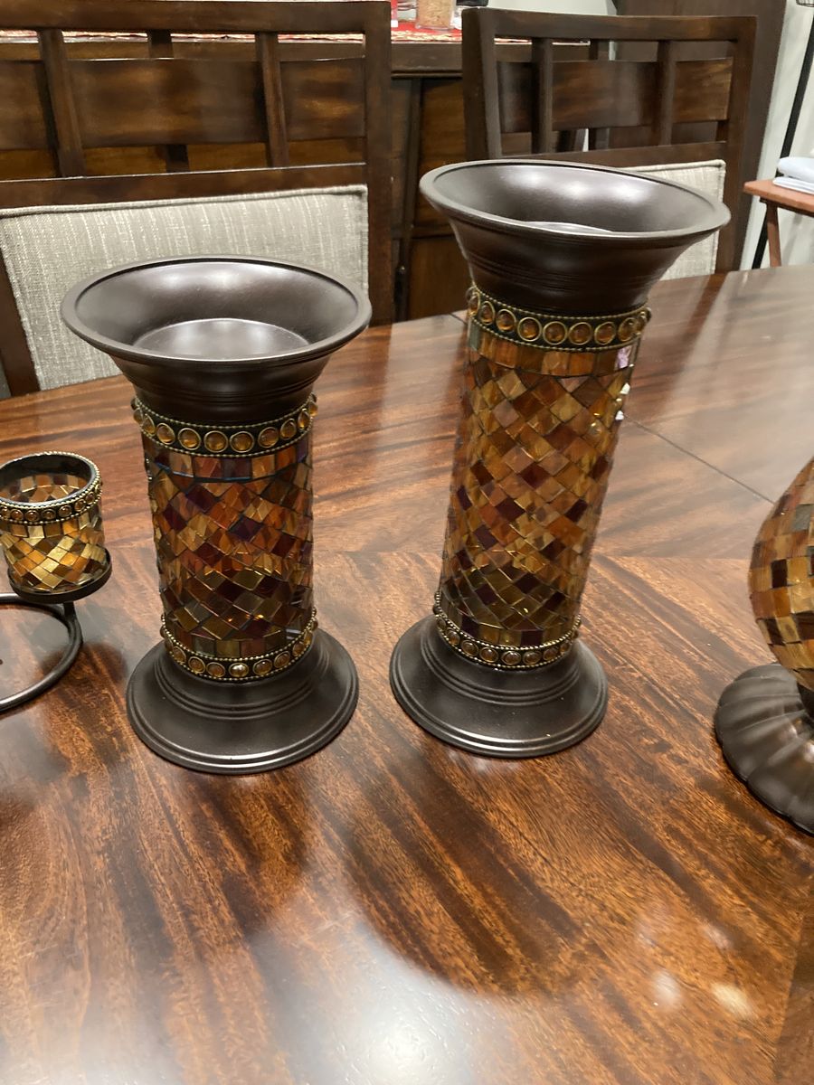 Party Lite Global Fusion Collection for sale. Includes 13" Hurricane, 9" Column, 11" collumn and the Multi Votive Centerpiece. Beautiful craftmanship. Asking $75 for the set. text 541-941-8474