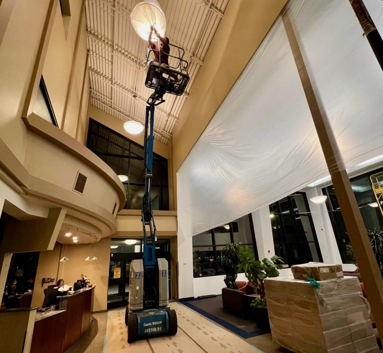 The 30' articulating manlift is a quiet, emission-free electric lift perfect for confined work spaces. Being only 47 wide, allows the lift to easily roll through standard double doorways.