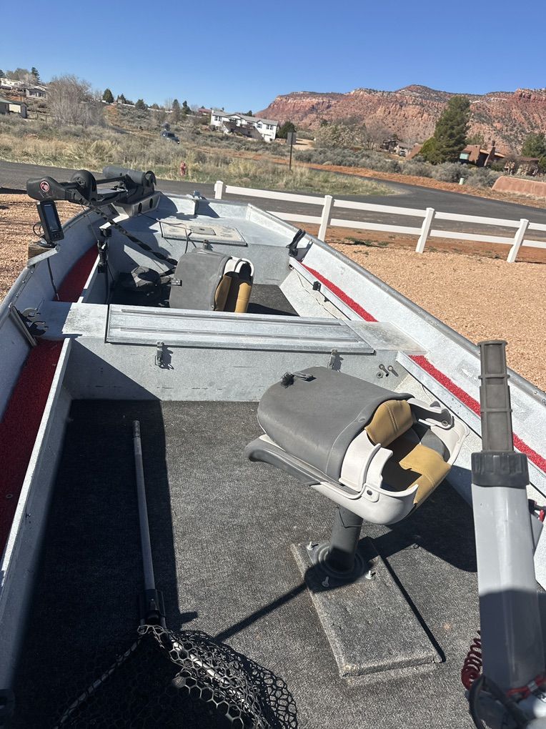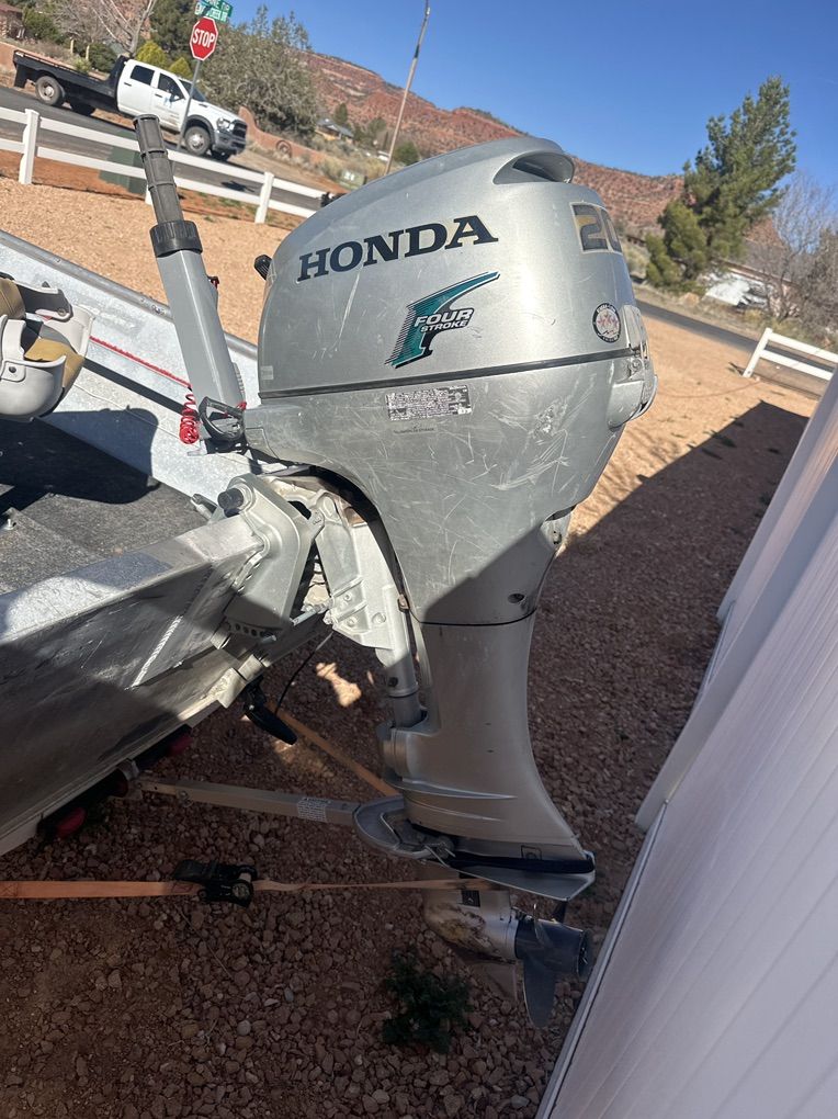 16’ Welded Aluminum Jon Boat with Honda 4 stroke 20 HP outboard and a minn kota 74 thrust 24 volt trolling motor. Also equipped with a hummingbird fish finder, and anchor. Ready to fish. Had it on the lake last week and everything runs as it should.
