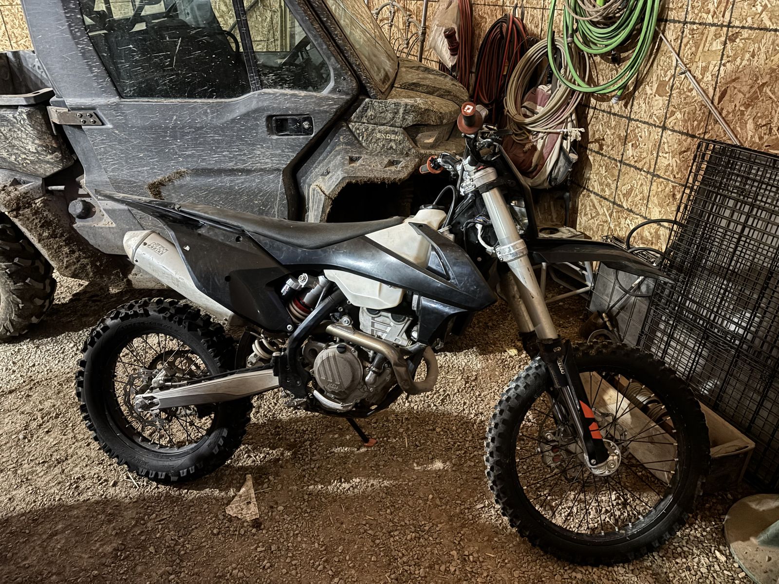 2018 KTM dirt bike in good condition. New plastics, grips and tires. The bike has around 3000 miles. The odometer wire broke off at 2500 and I didn’t put on a new one. All the road legal accessories have been removed.
