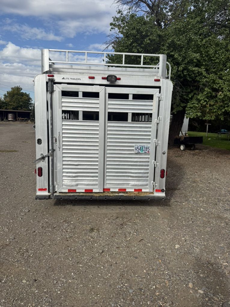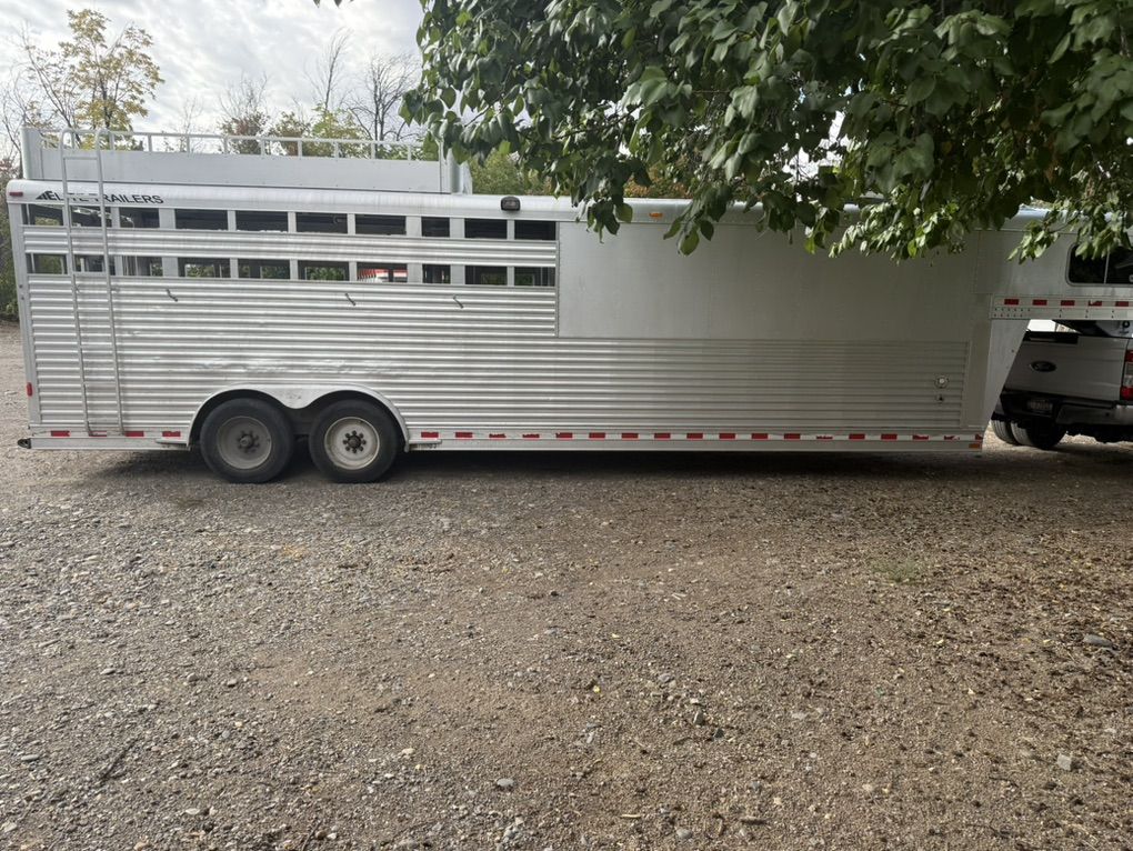 07 elite stock combo. Mid tack with tons of room. Floating center gate. Cowboy shower in stock area. 28’ on the floor. 8’ wide 15’ stock area 4’ mid tack lots of bridle hangers blanket rack and 4 saddle racks. 9’ Weekender with a sink microwave and closet. Comes with a mini fridge. hot water heater. Does have some dents on the sides in the stock area from hauling bucking horses in it. Huge hay rack. Great trailer really hate to let it go but with a growing family we need a bigger trailer