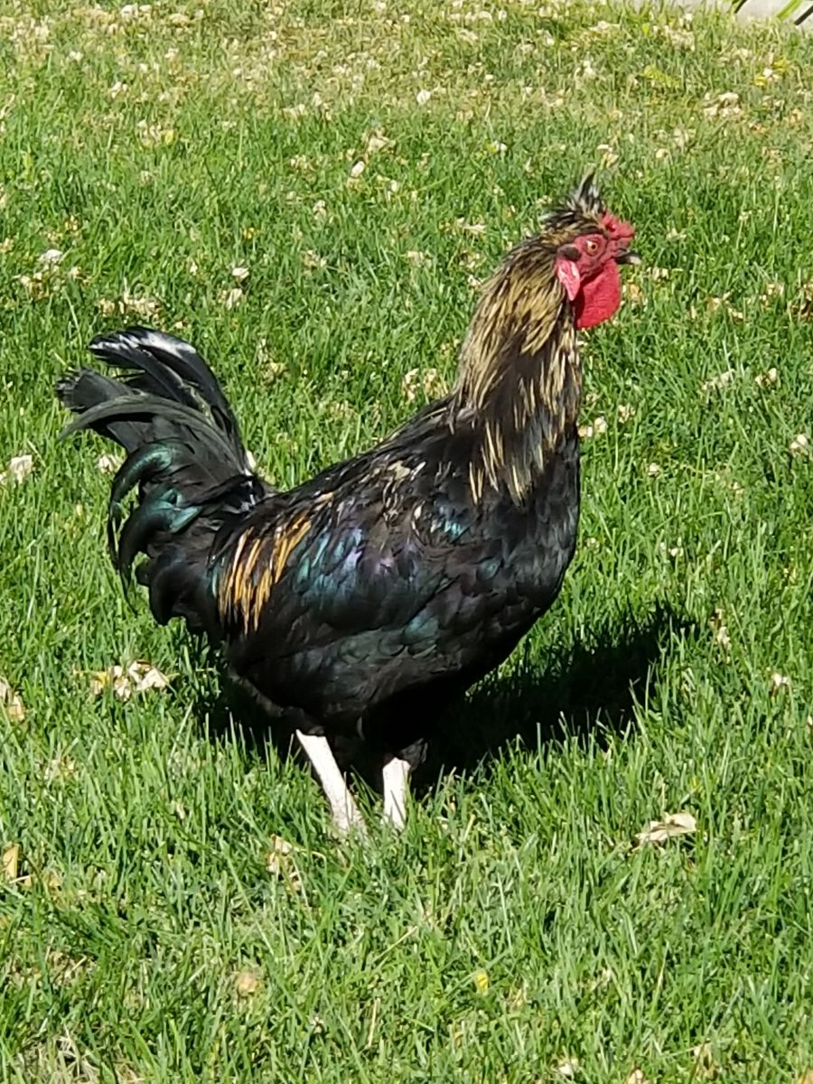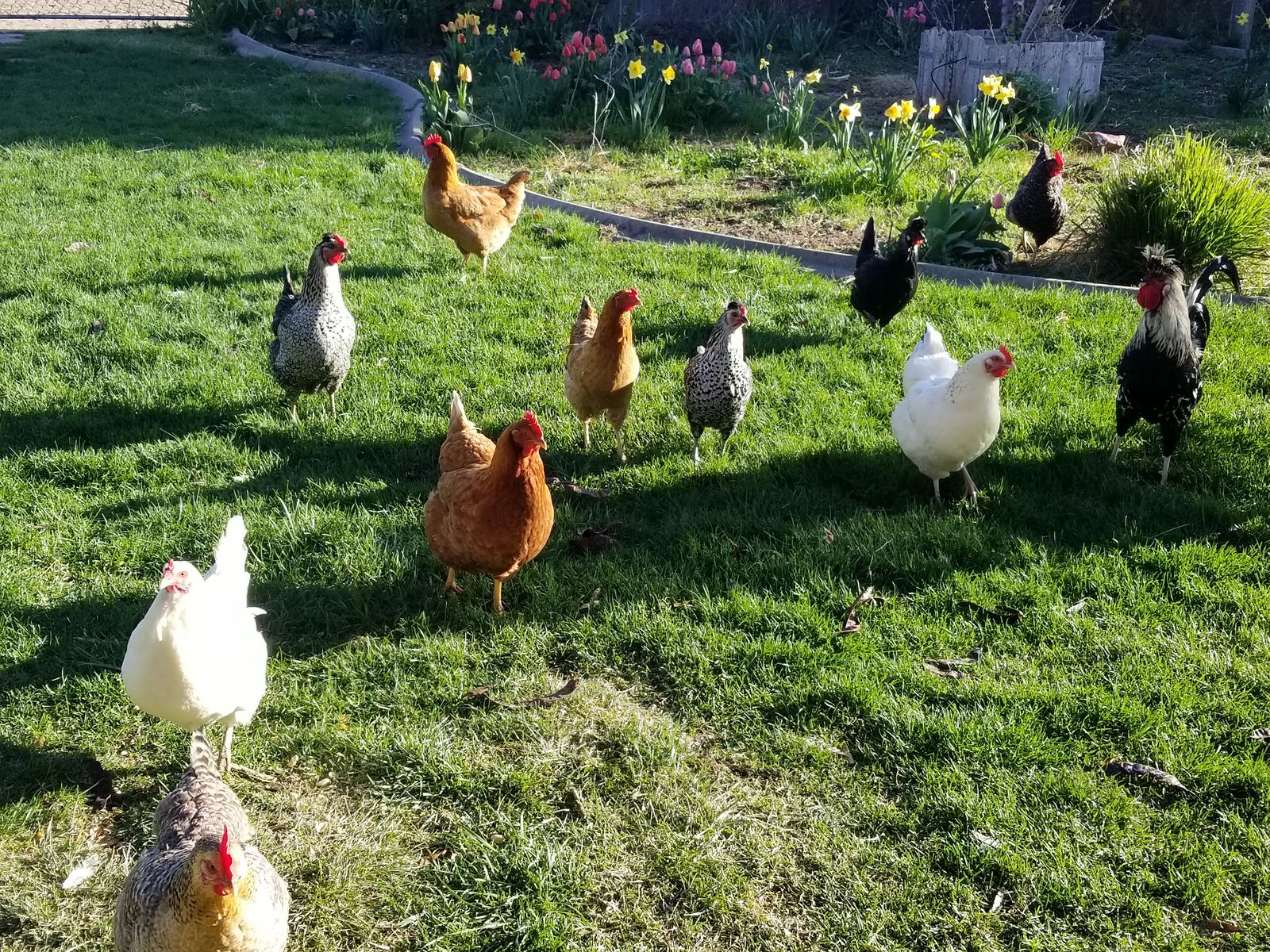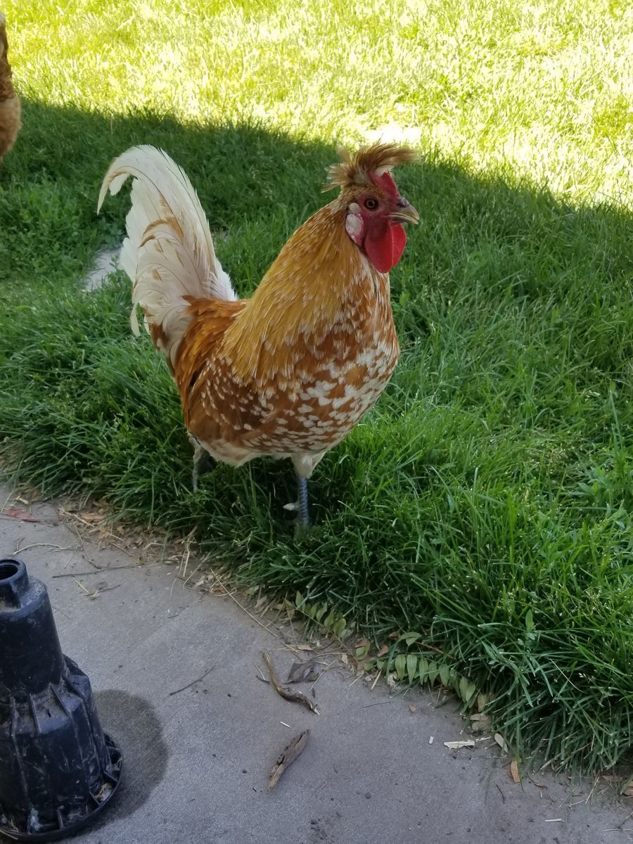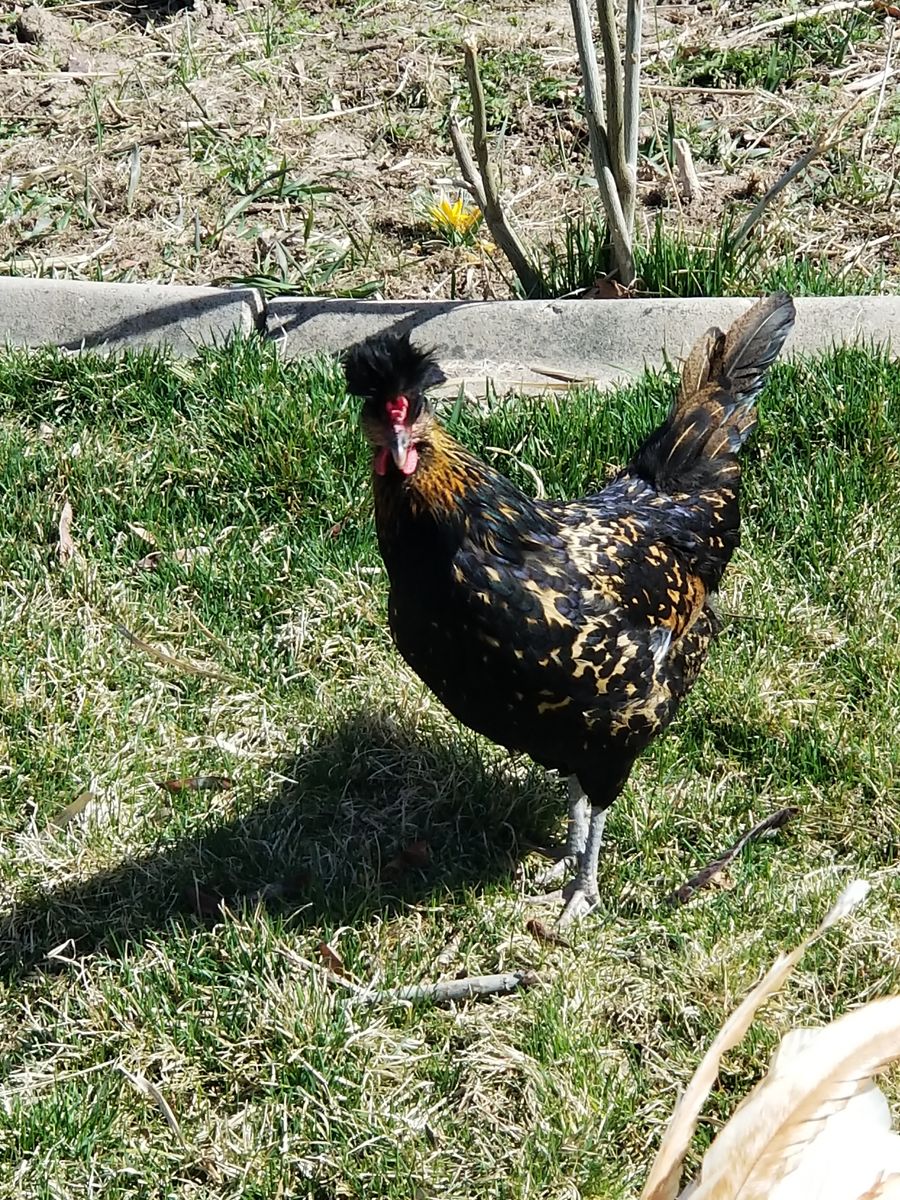 Barnyard mix, cold hardy, good layers, good free-rangers mix breed. The rooster is an Appenzeller Spitzhauben.