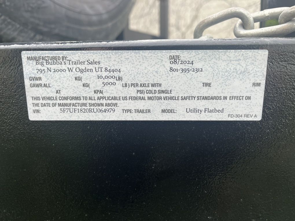 2024 Big Bubba Flatbed Trailer 10K rated Purchased new in late 2025 Used once 16’ deck, 2’ dovetail New condition Spare tire included