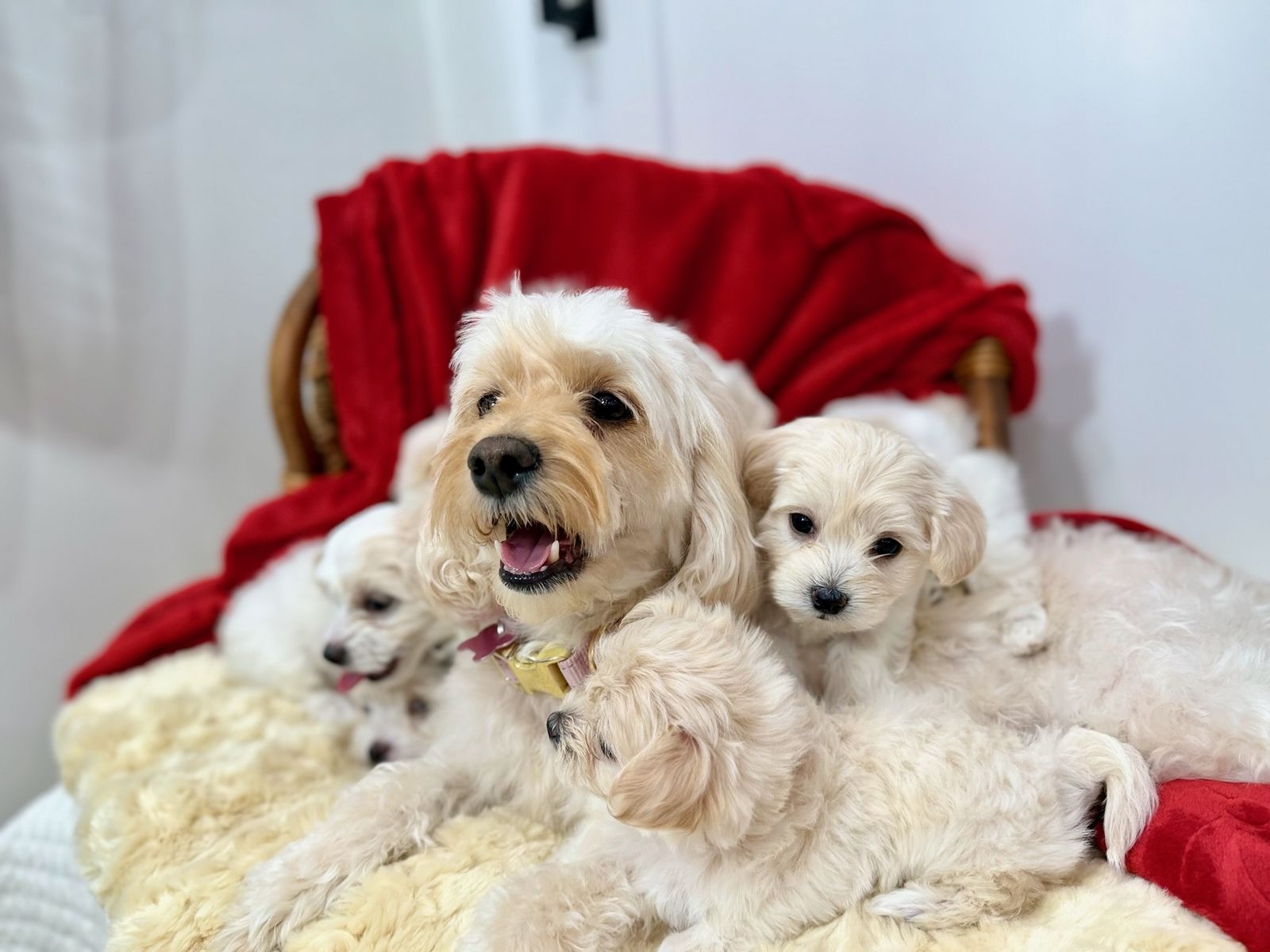 We have a beautiful litter of toy designer Maltipoo puppies available, born December 2nd and currently 12 weeks old. These puppies are being raised in-home with lots of love, socialization, and hands-on care.