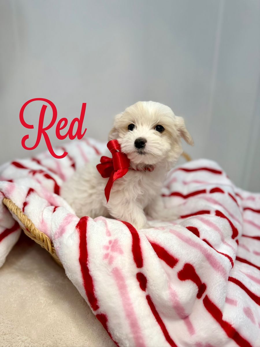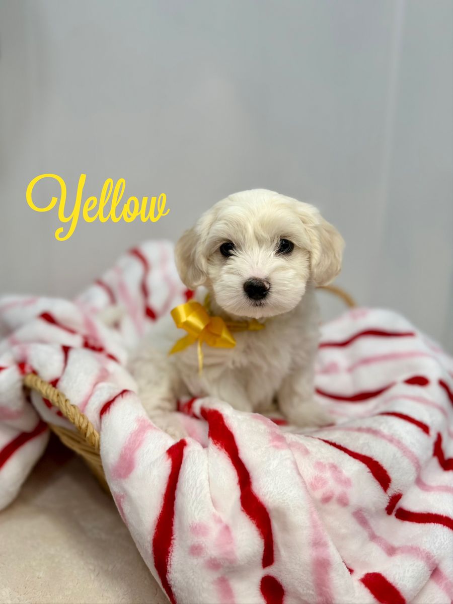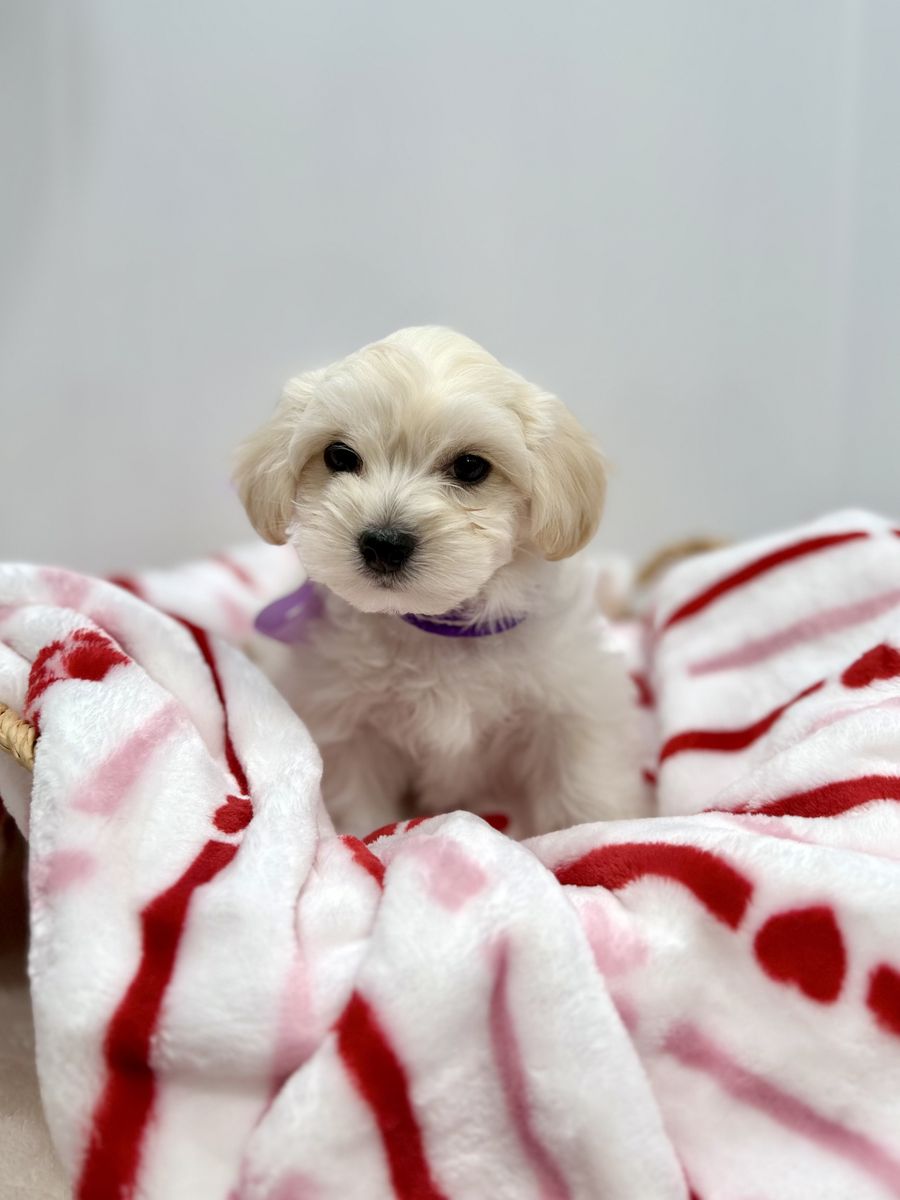 About the Puppies: • White & cream bicolor • Soft, fluffy coats • Hypoallergenic & low shedding coats • 75% Maltese / 25% Poodle • Estimated adult size: approximately 7–12 lbs • One petite female estimated 4–7 lbs as an adult • Sweet temperaments and well-socialized