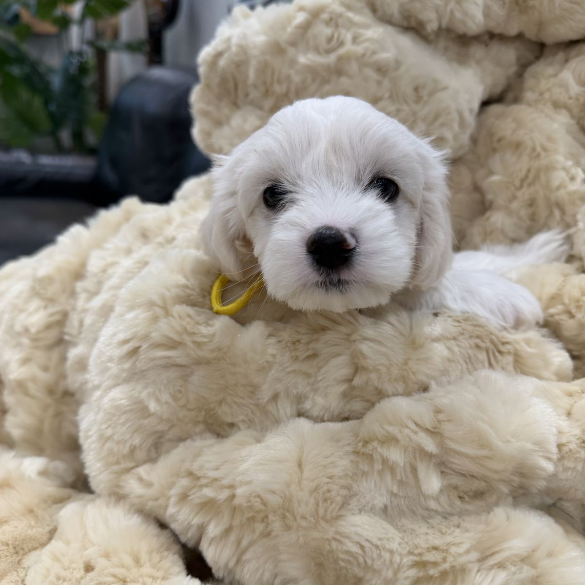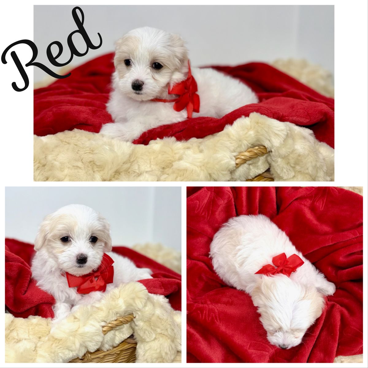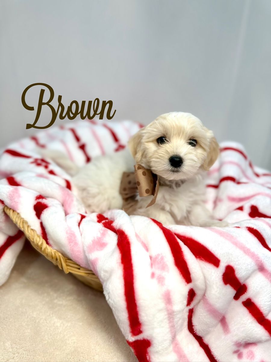 About the Puppies: • White & cream bicolor • Soft, fluffy coats • Hypoallergenic & low shedding coats • 75% Maltese / 25% Poodle • Estimated adult size: approximately 7–12 lbs • One petite female estimated 4–7 lbs as an adult • Sweet temperaments and well-socialized