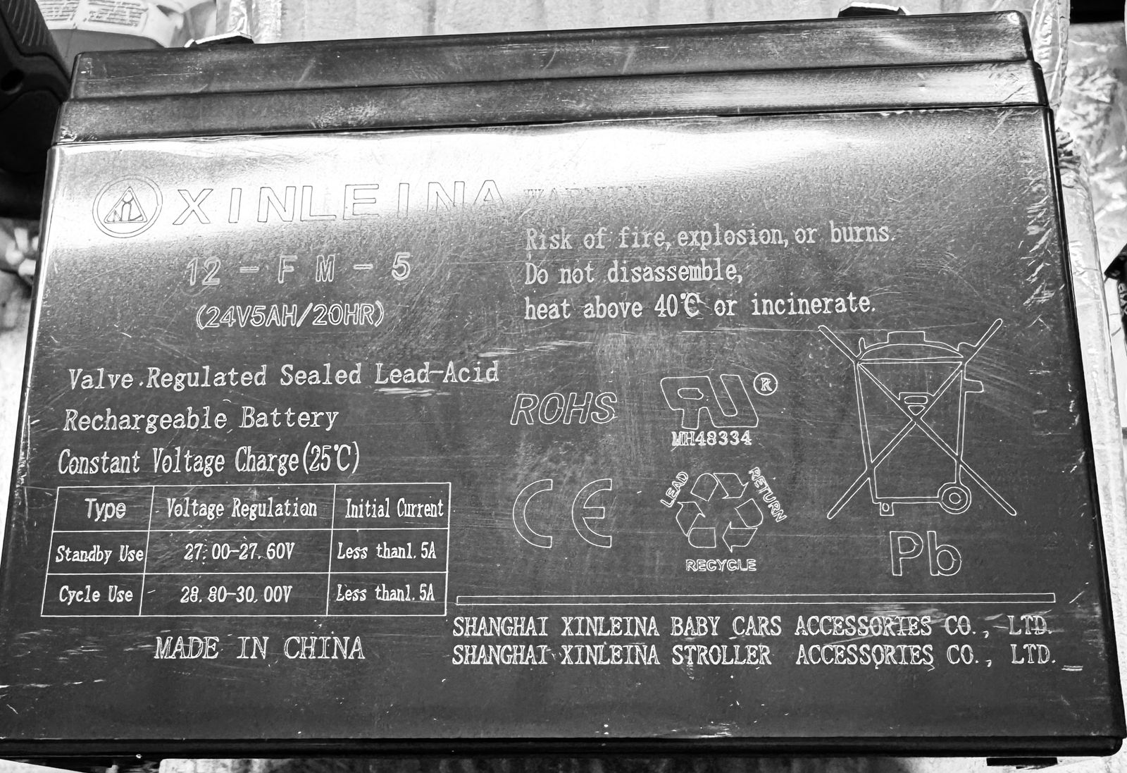 ZelleXINLEINA 24V 5Ah Sealed Lead Acid Rechargeable Battery, with Universal F2 Terminals, Compatible with 24V Ride-Ons