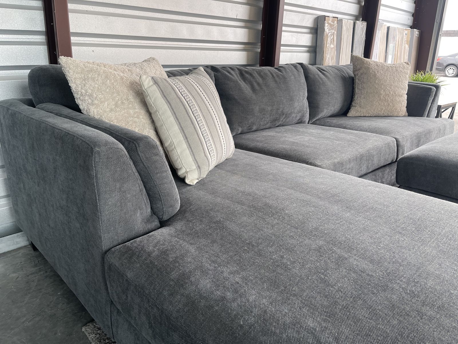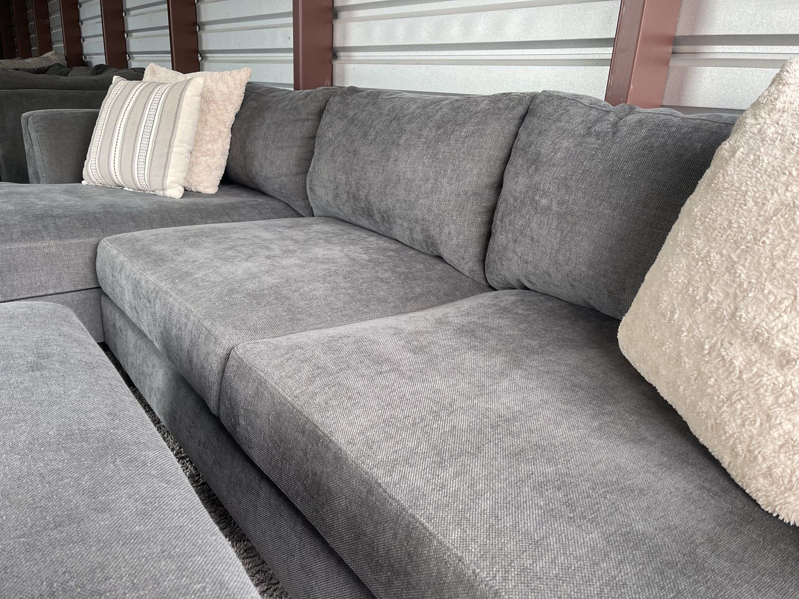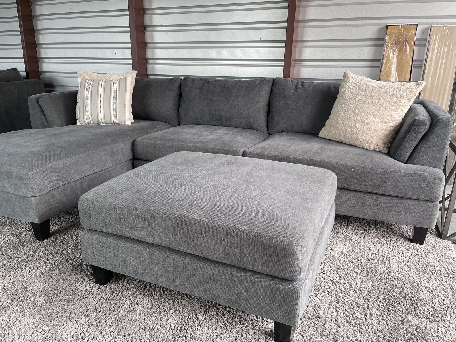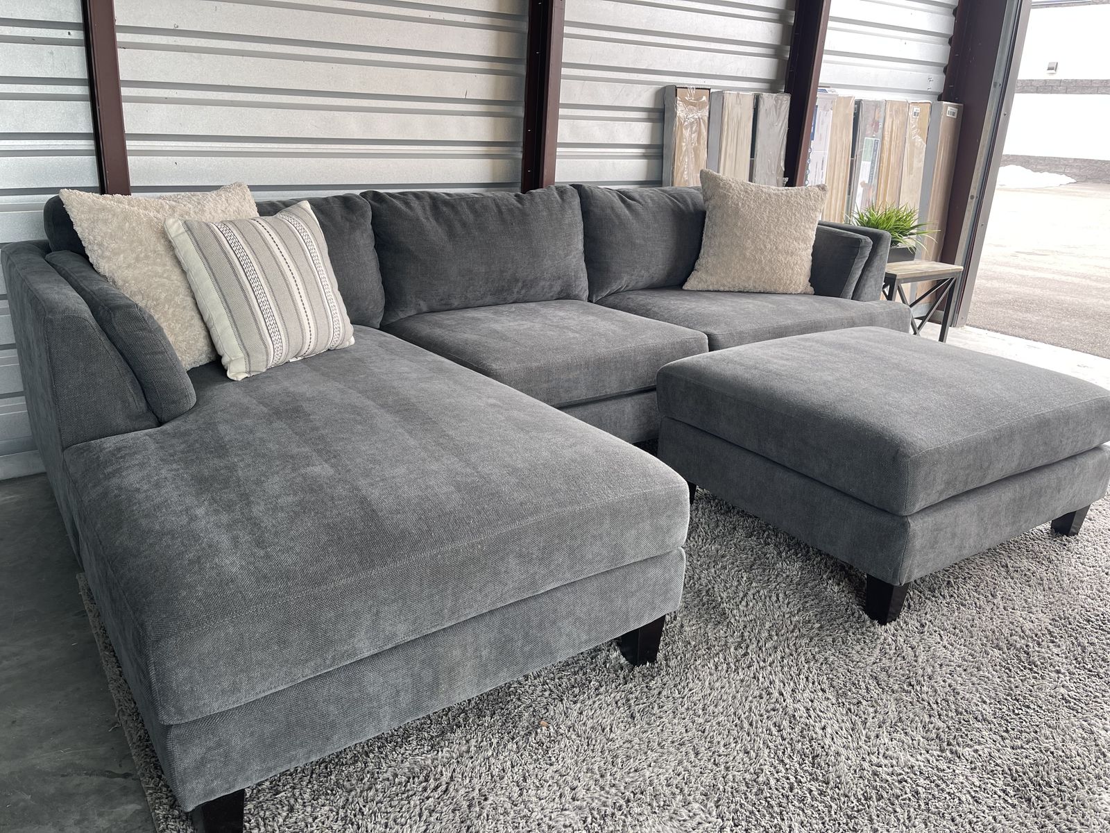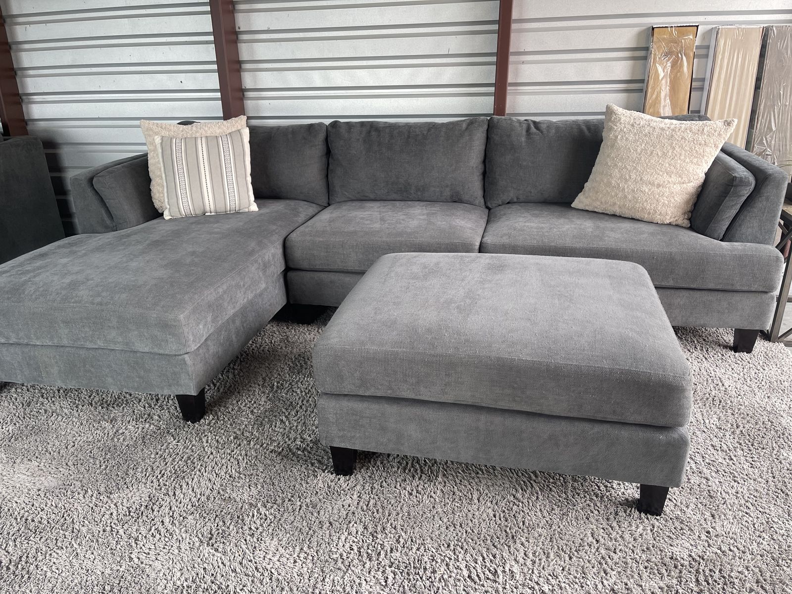 I am selling a Gray Costco sectional sofa couch with ottoman in good condition!