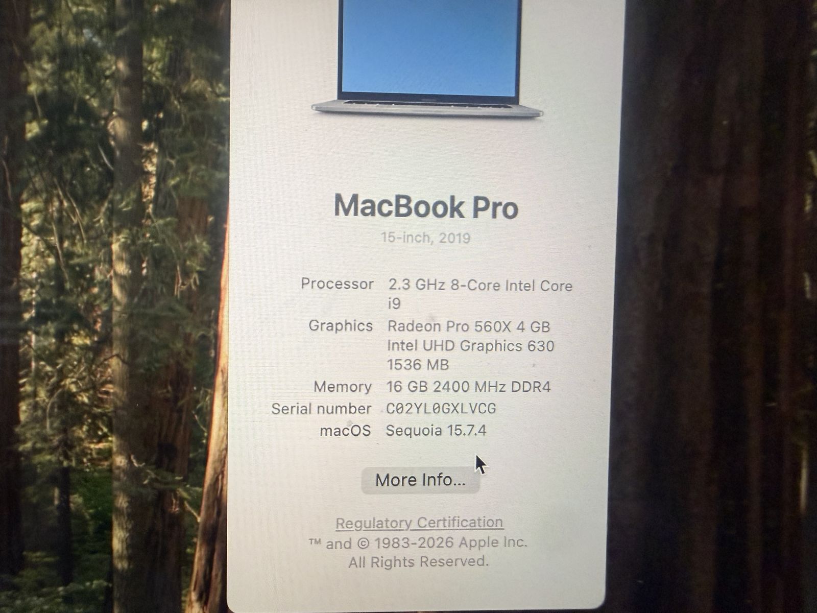Venmo2019 15in space grey macbook pro: Intel 8 core i9 processor @2.3ghz