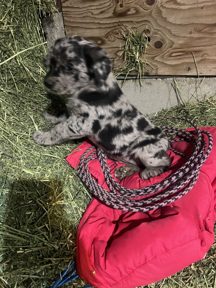 PayPalOne black female two Aussie/lab cross the two Aussie have there tales docked they have been doing very well with grandkids very playful and attentive they are 8 weeks old have had first shots eating great ready started to wean off the mother text for any other info mom and dad are on site the black female is 250.00 the two Australian are 300.00